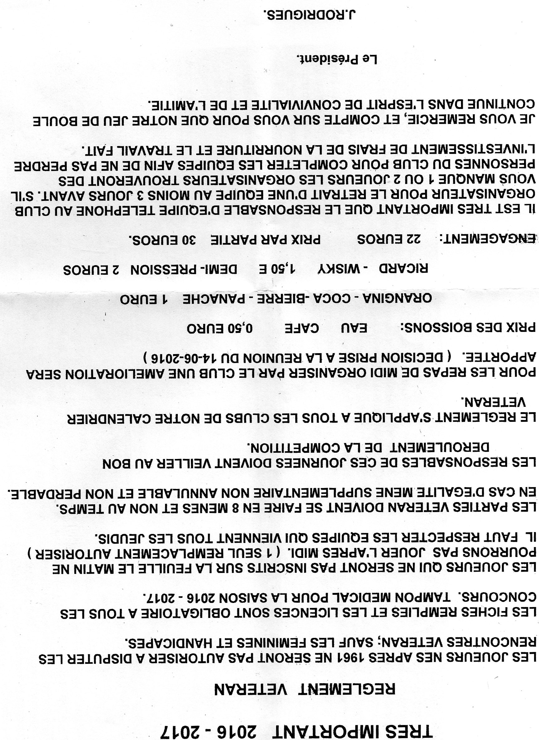 Vous trouverez en pièces jointes les calendriers vétéran 2016 - 2017 des secteurs Nord et sud (CBD 31) ainsi que le règlement et la liste des responsables avec leurs coordonnées.