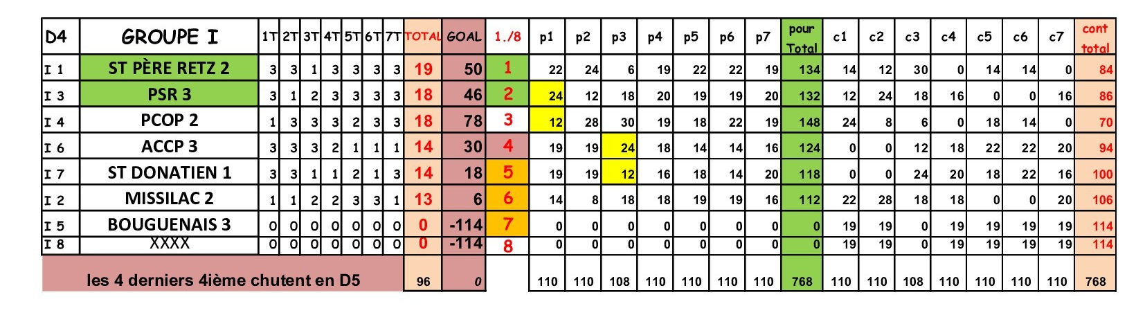 L'équipe 2 réalise un très beau parcours et termine 3ème, coiffée sur le fil par PSR 3, seule défaite de la saison et alors qu'elle dispose d'un goal-average largement plus favorable; elle rate d'un cheveu la montée en division 3, mais est la seule équipe a se maintenir les autres équipes descendant en 5ème division. Bravo donc à tous les équipiers !