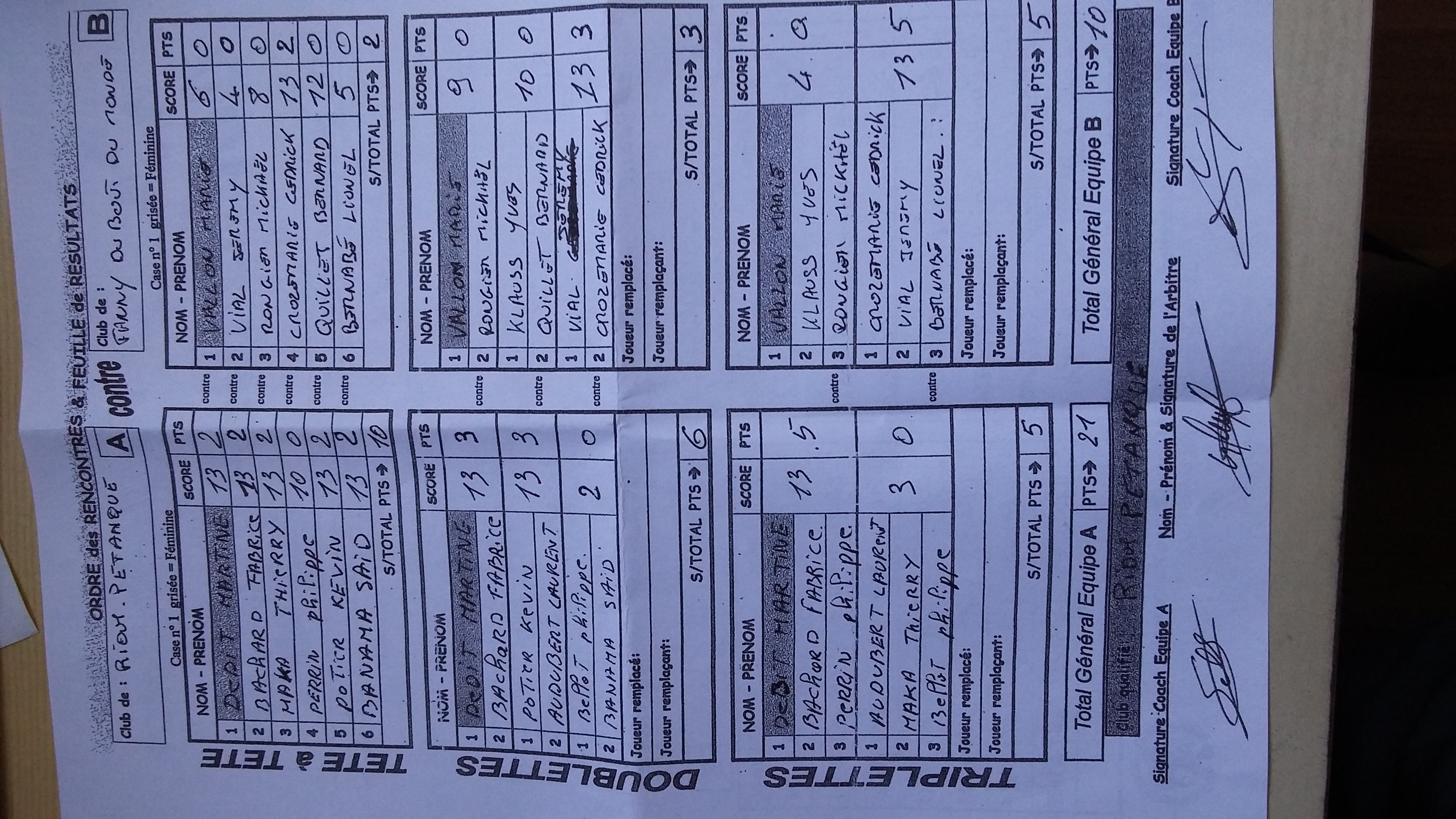 Sur les 7 joueurs de RIOM inscrits à Entraigues, PERRRIN, BACHARD et BENAMA ont été qualifiés pour Saint OURS.