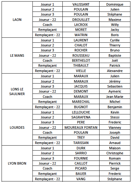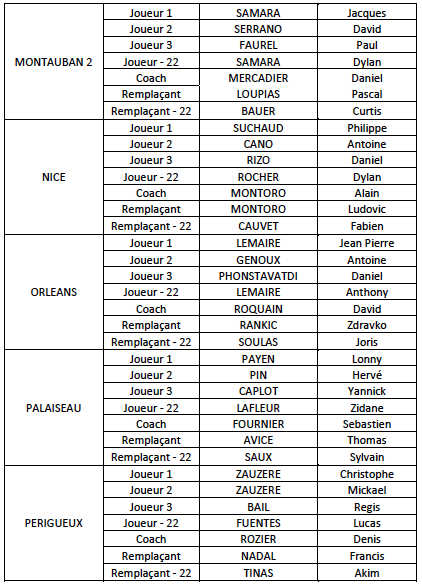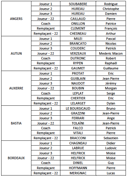 Sanchez patrick, Rapuzzi sébastien ,Minuzzo frédéric et en moins de 22 ans Dupuy mathieu ; remplaçant Almuzard éric et Quaglieri florian.