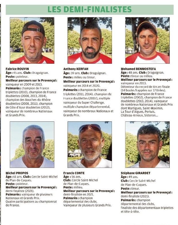 Le Provençal 2022 ; Les demi-finalistes et finalistes