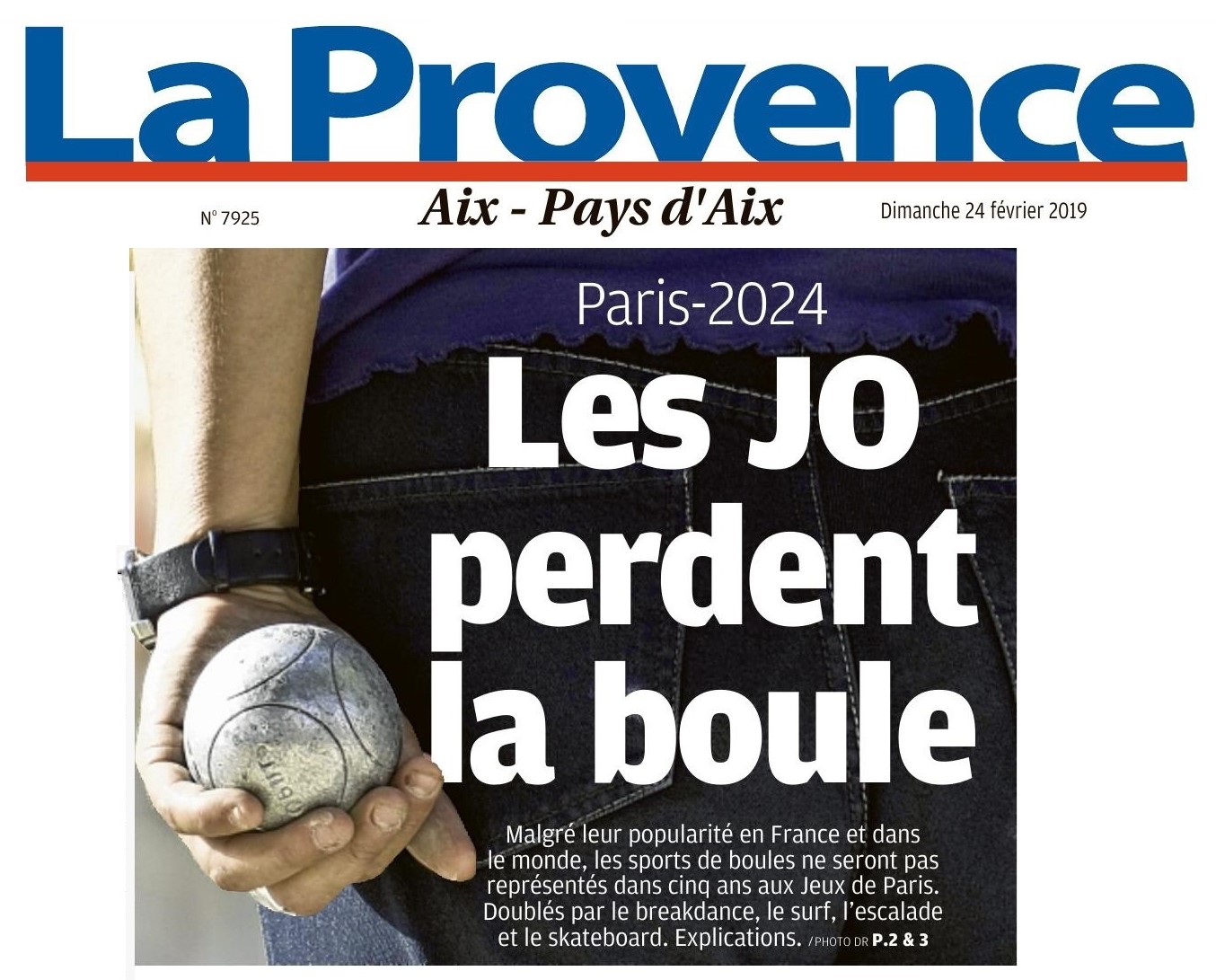 Sur "La Provence" de ce jour, un dossier complet réalisé par Eric Breton et un édito de Franz-Olivier Giesbert, sur la candidature de la pétanque aux Jeux Olympiques de Paris (2024) ;