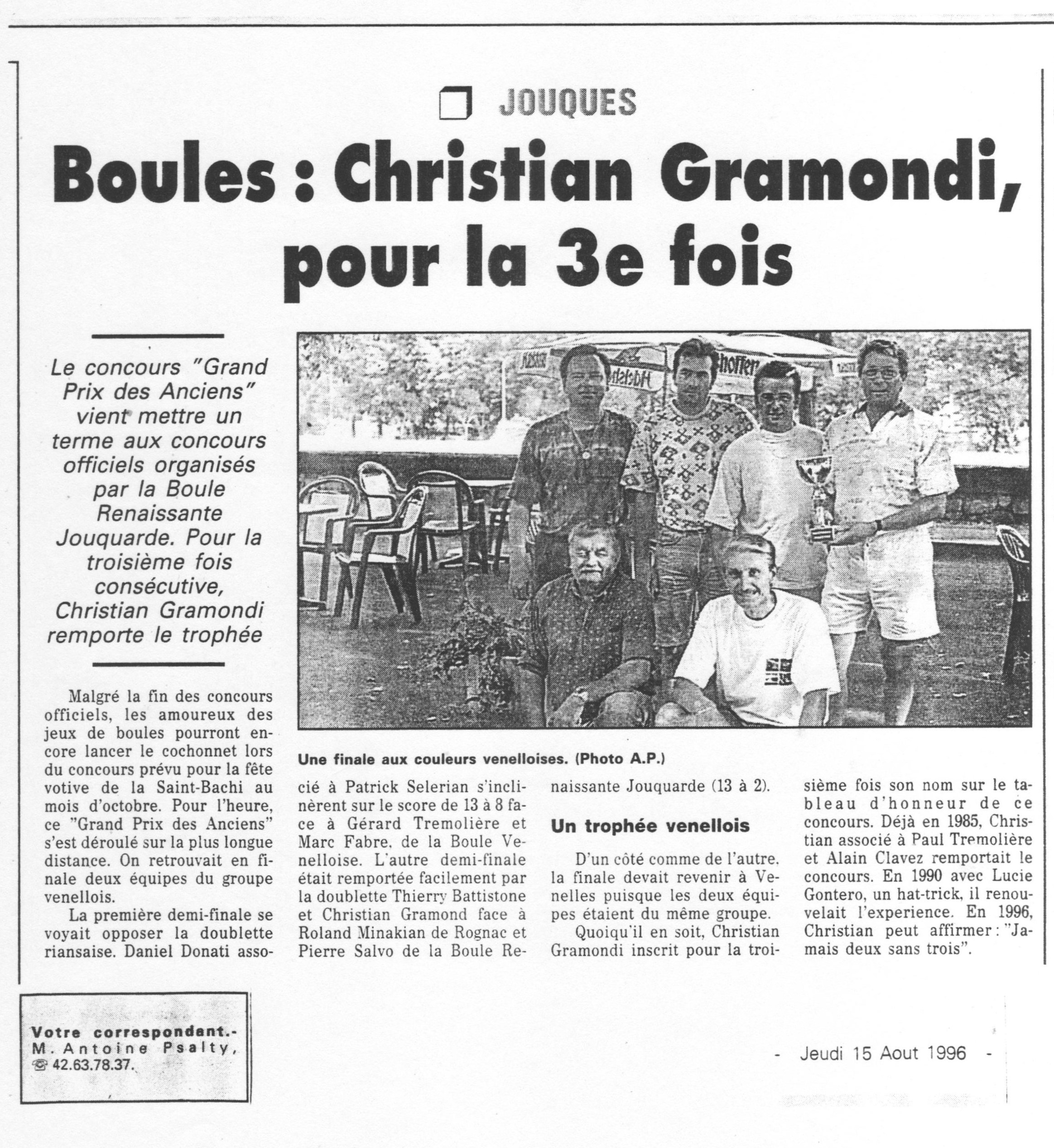 Jouques : Boules : Christian Gramondi pour la 3ème fois ; (de Antoine Psalty)