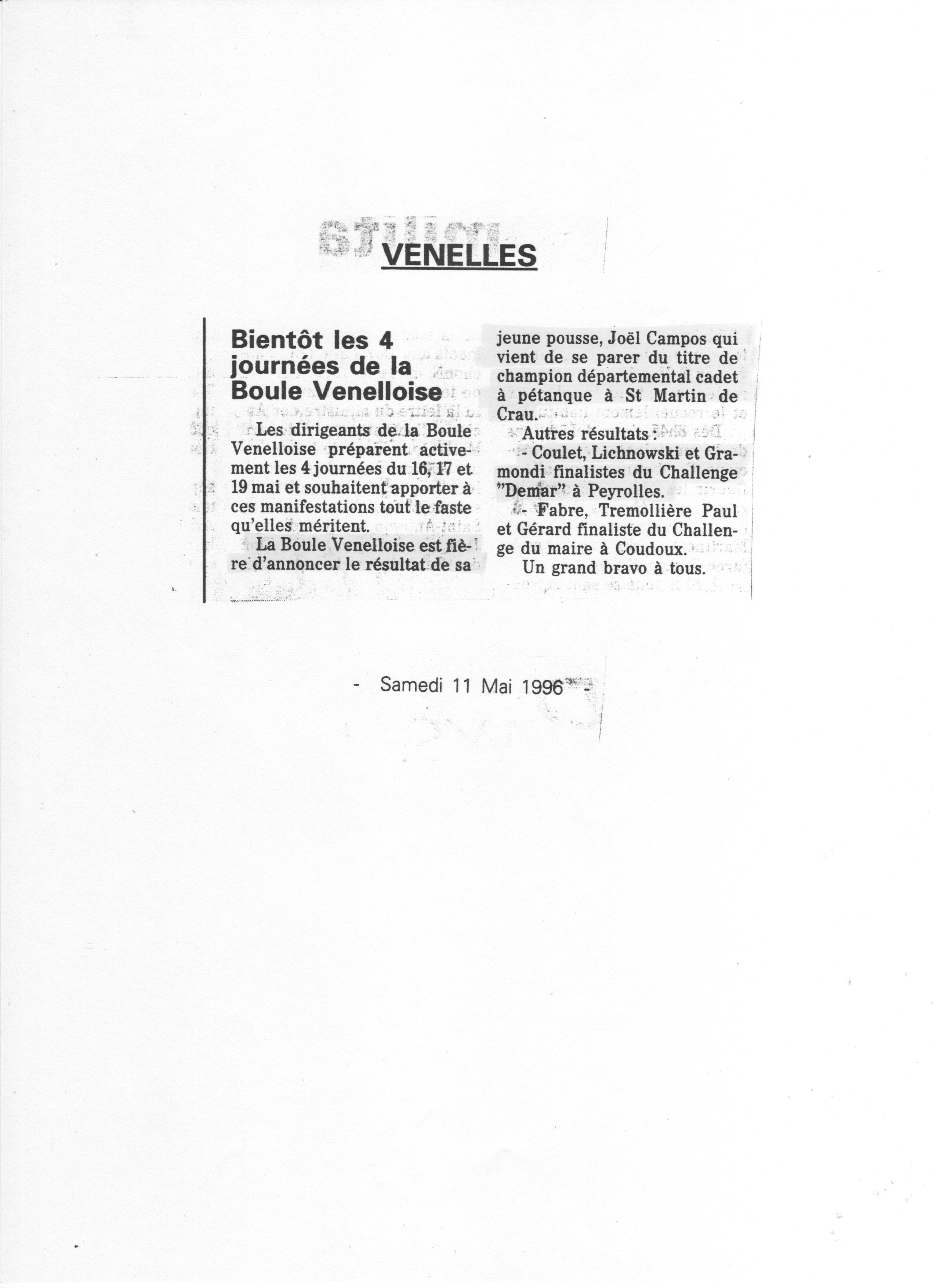 Bientôt les quatre journées de la Boule Venelloise ;