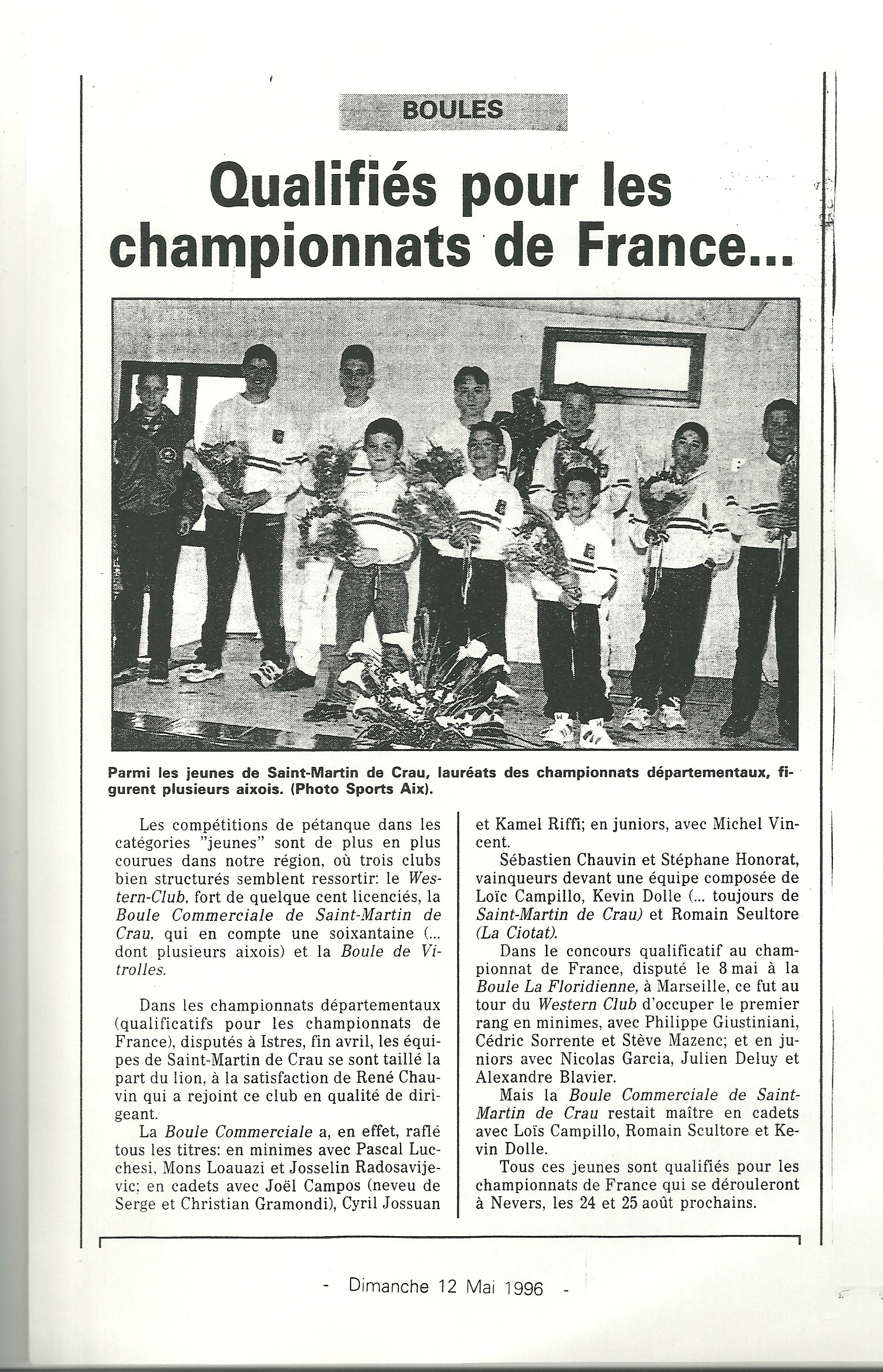 Les qualifiés pour le Championnat de France cadets à pétanque ;