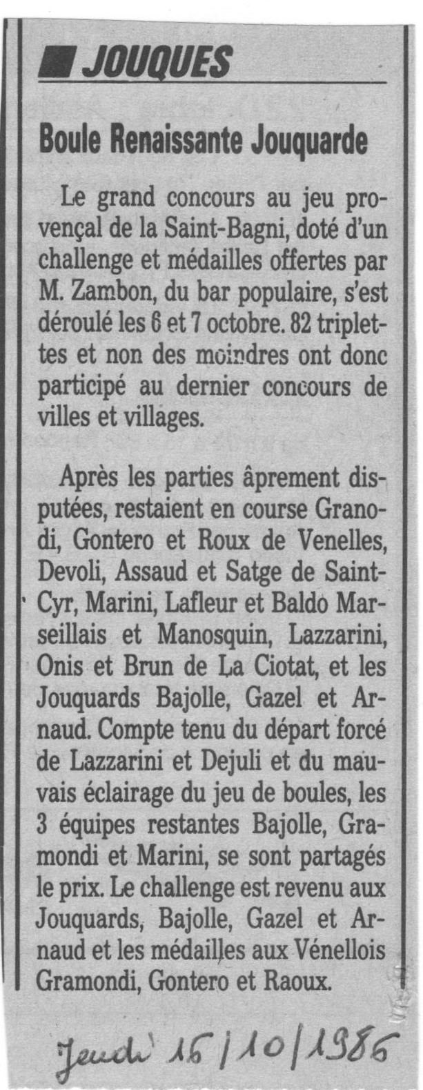 Jouques - Boule Renaissante Jouquarde (concours au jeu provençal de la Saint-Baqui)