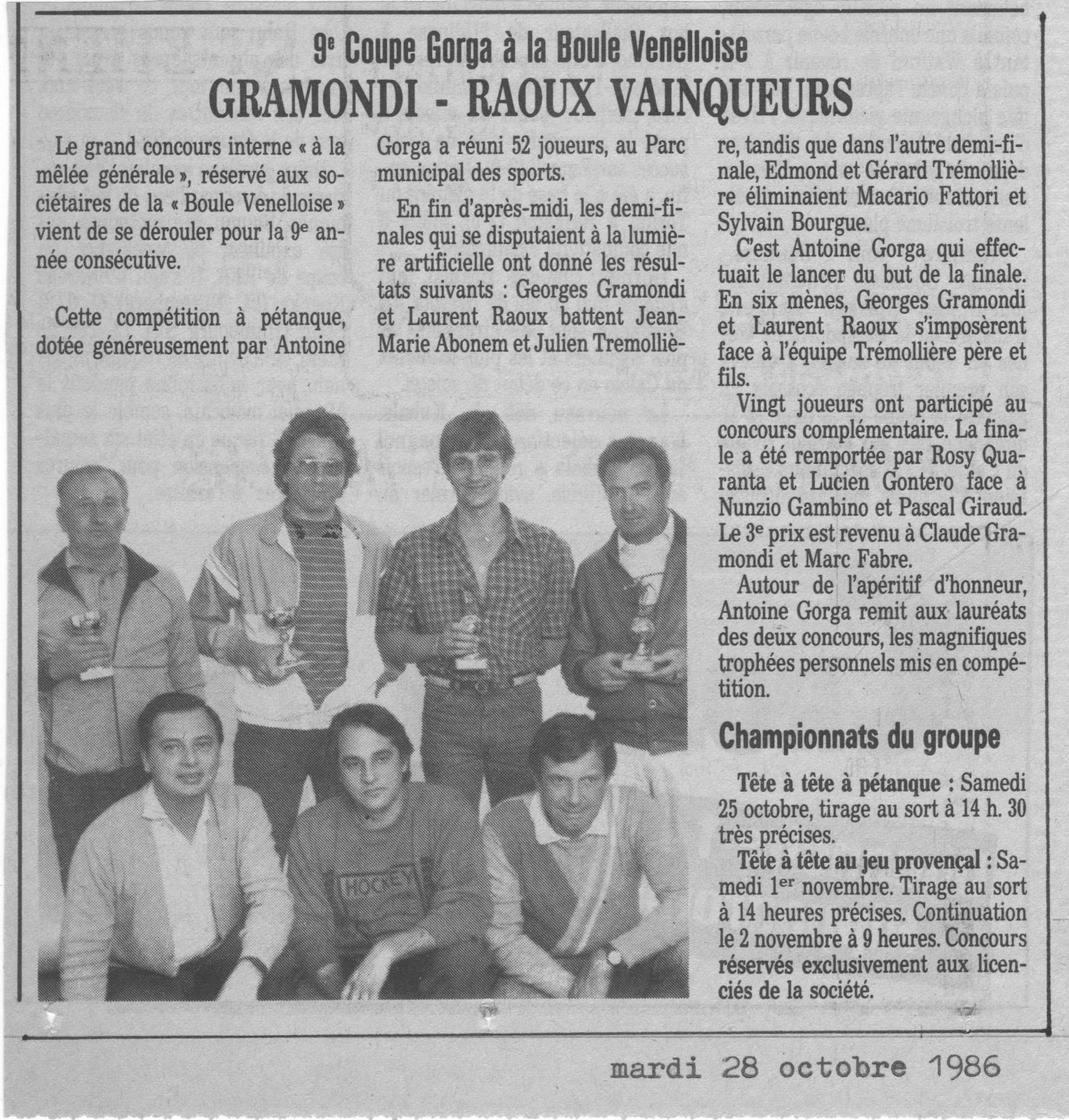 9ème Coupe Gorga à la Boule Venelloise ;