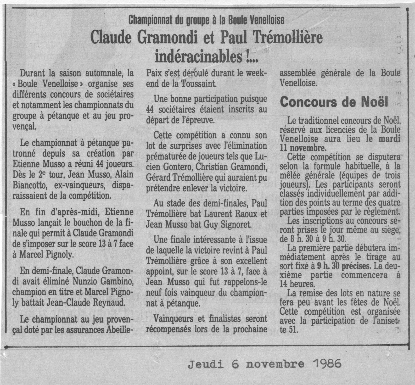 Christian Gramondi - Lucien Gontero - Laurent Raoux (Boule Venelloise) co-vainqueurs ;