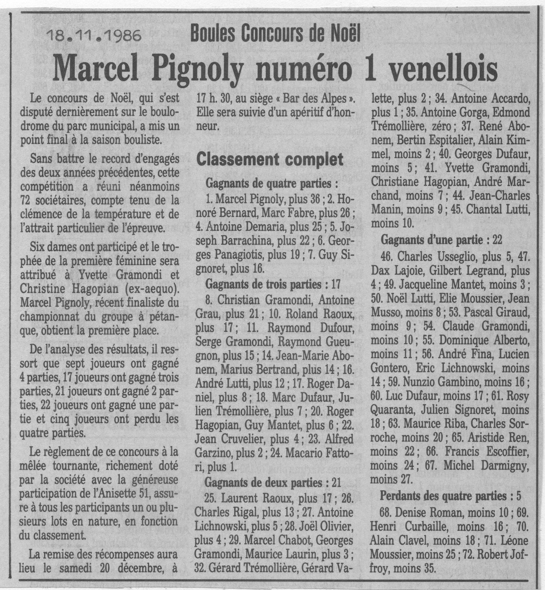Marcel Pignoly, numéro 1 venellois ;