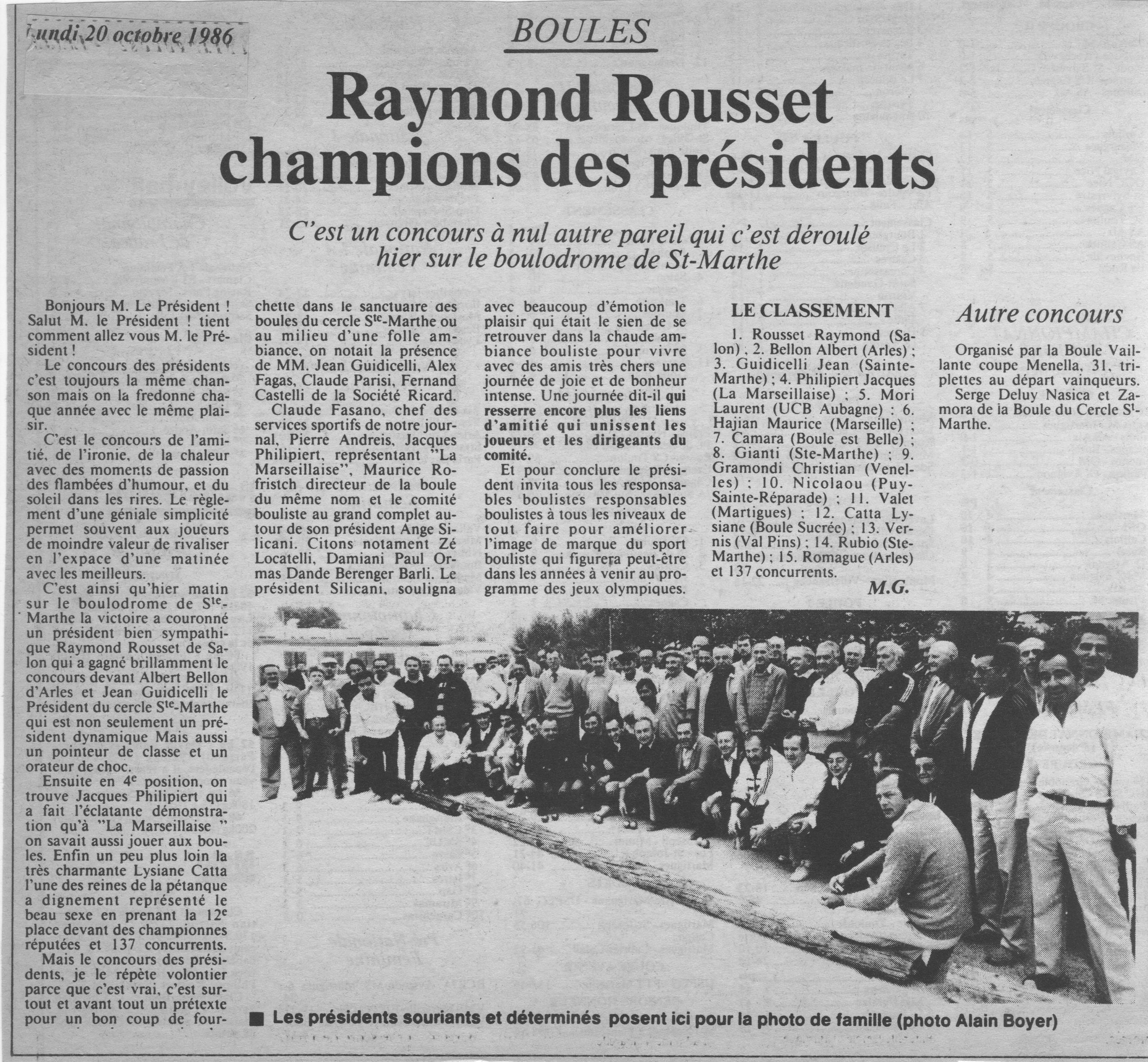 Raymond Rousset, champion des présidents ;