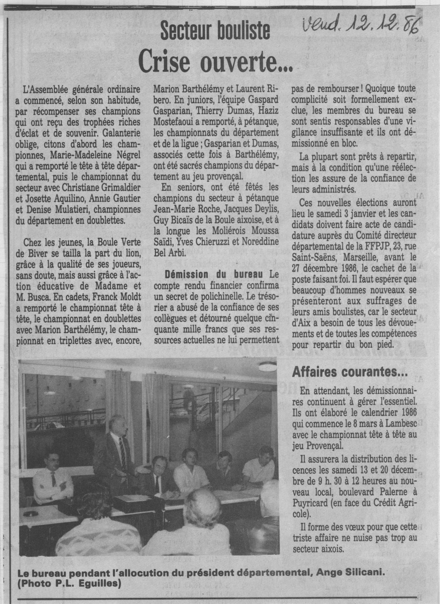 Secteur bouliste aixois ; (de Pierre LAURENT)
