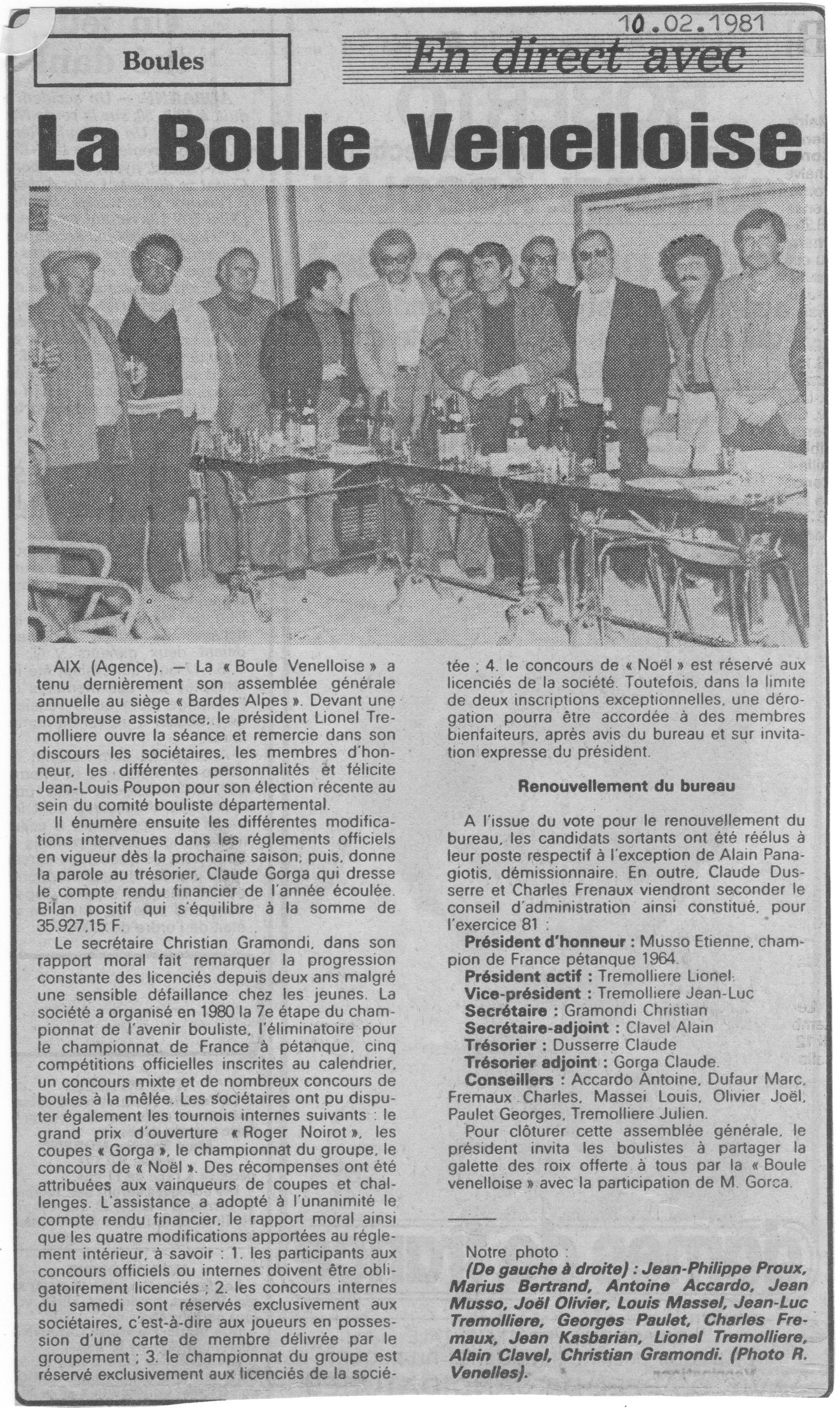 Assemblée générale de février 1981 ;