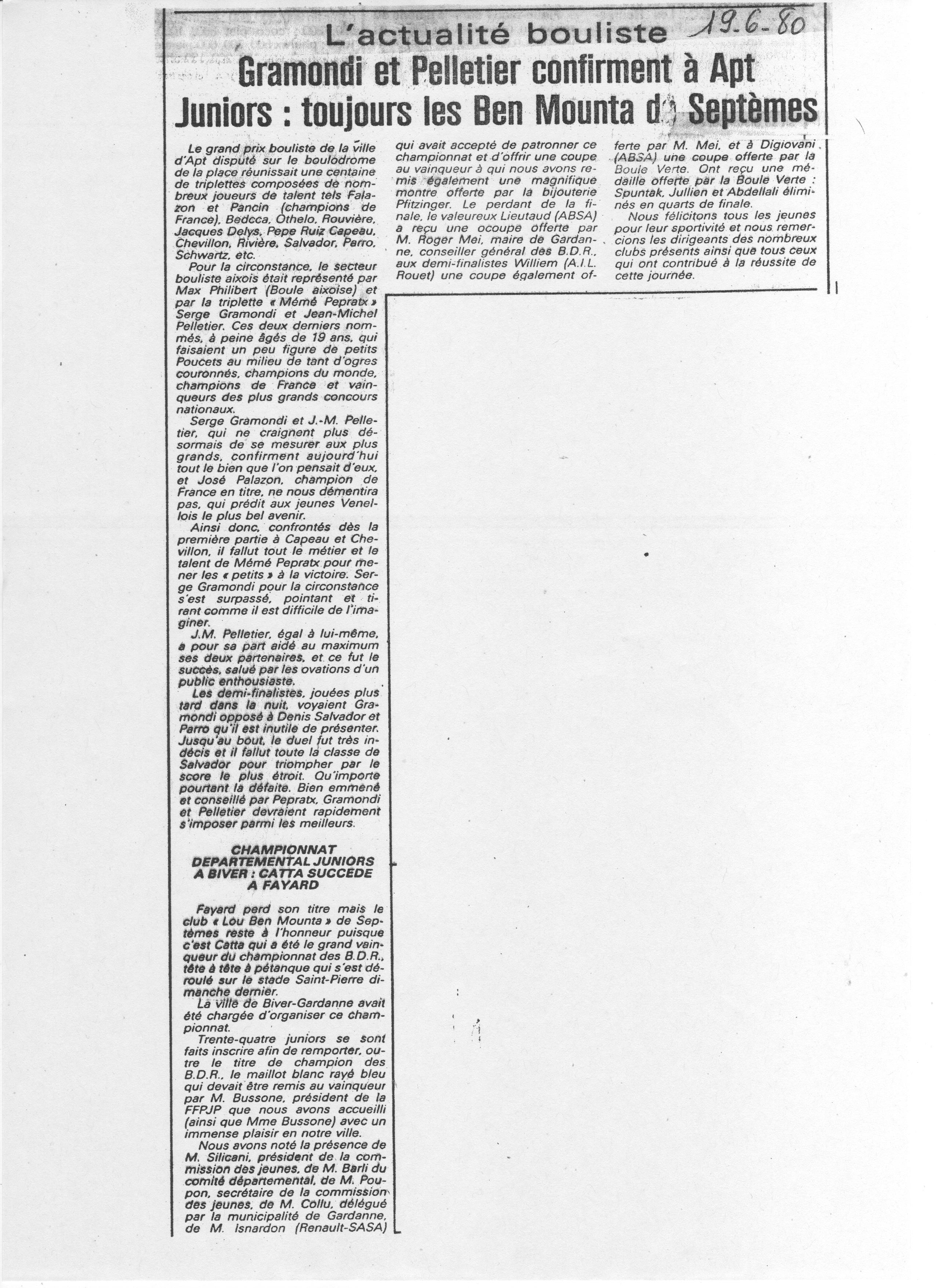 Grand Prix de la ville d'Apt à pétanque ;