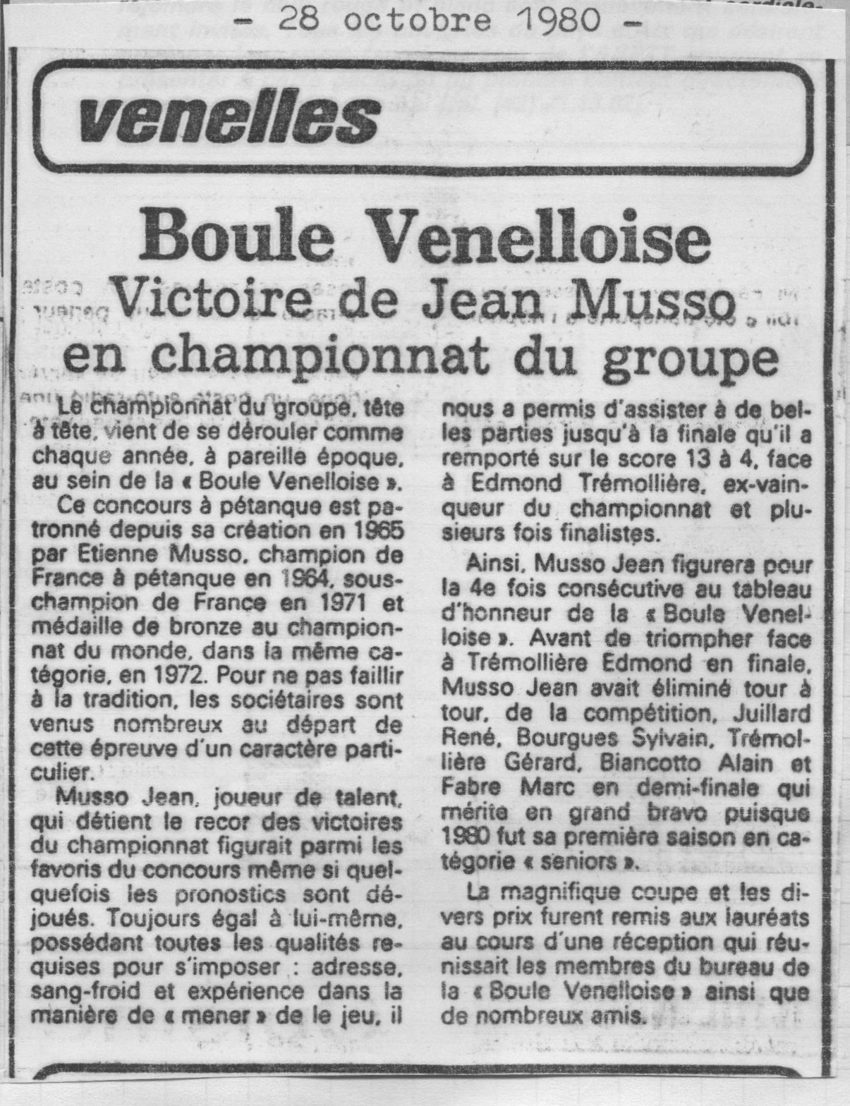 Victoire de Jean MUSSO en championnat du groupe