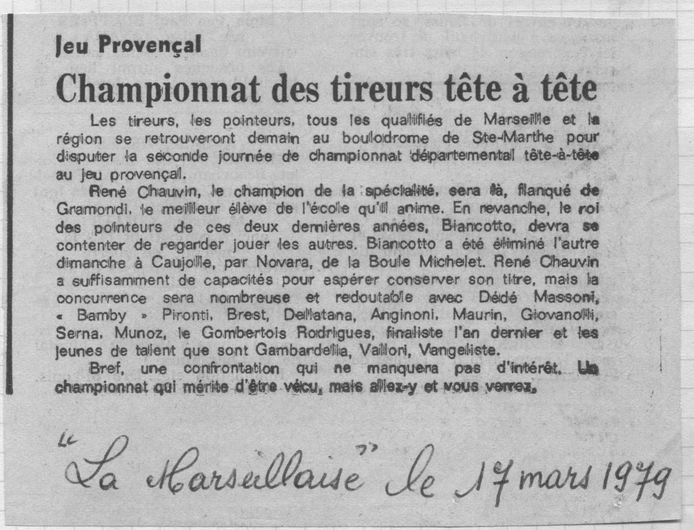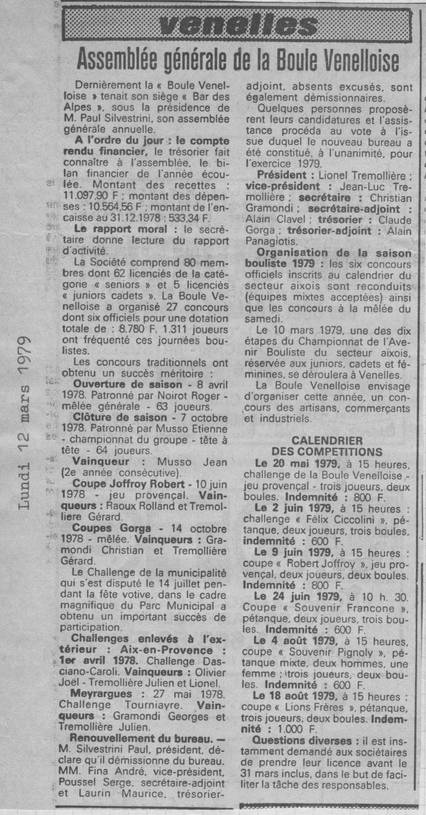 Christian Gramondi fait son entrée au conseil d'administration de la Boule Venelloise, en qualité de secrétaire. Il y effectuera un mandat de 13 ans, jusqu'en 1991 inclus.