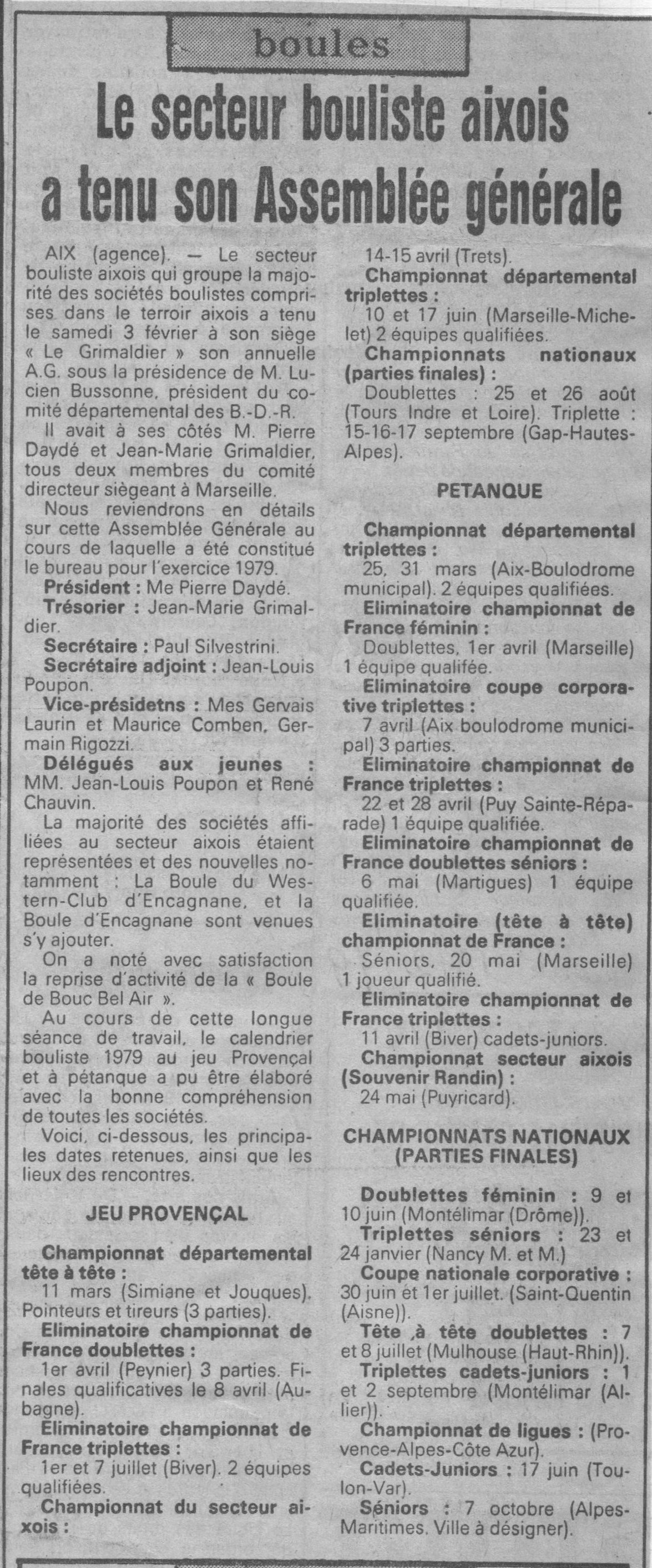 Le Secteur Bouliste Aixois a tenu son assemblée générale ;