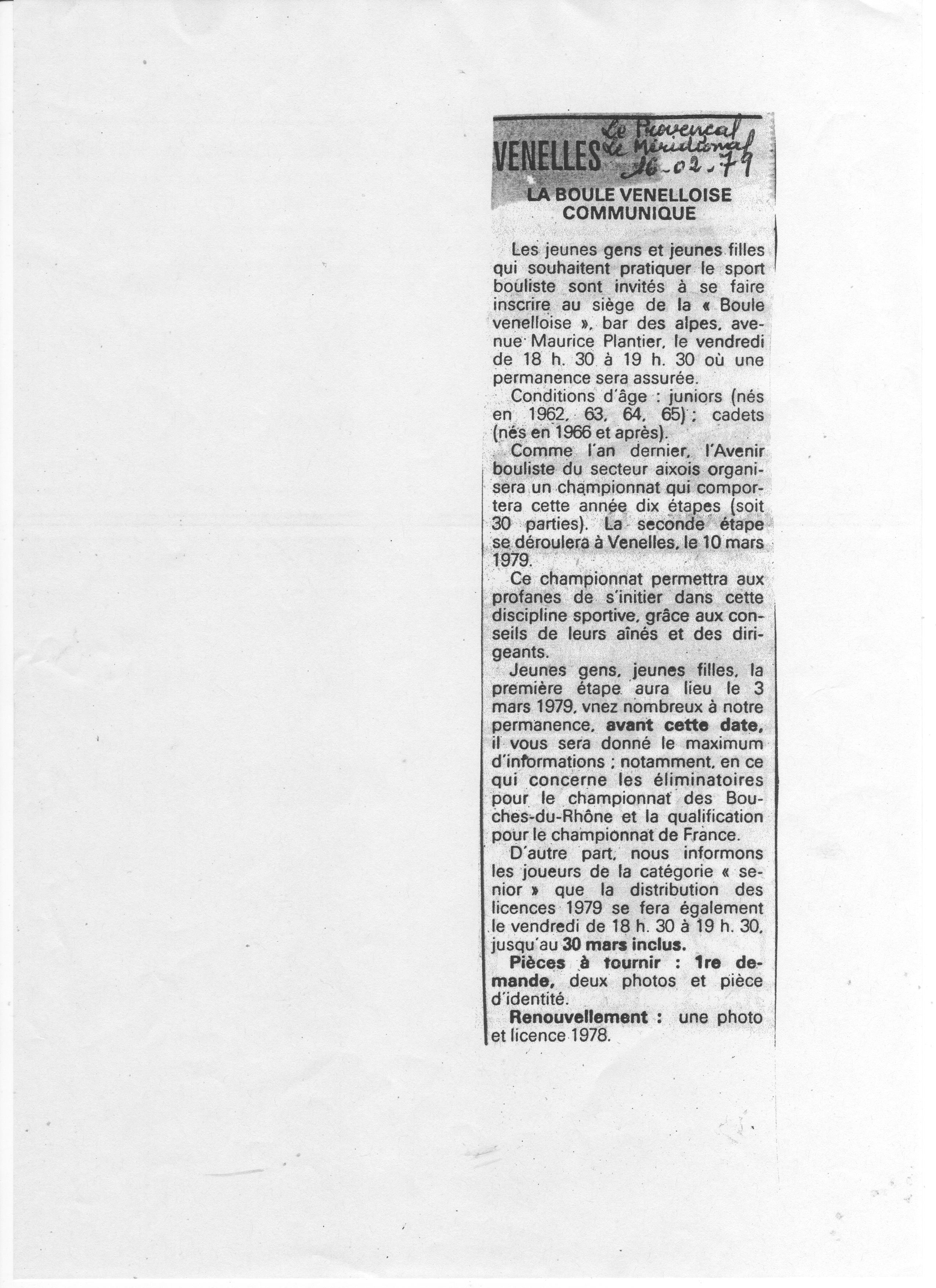 La Boule Venelloise communique :
