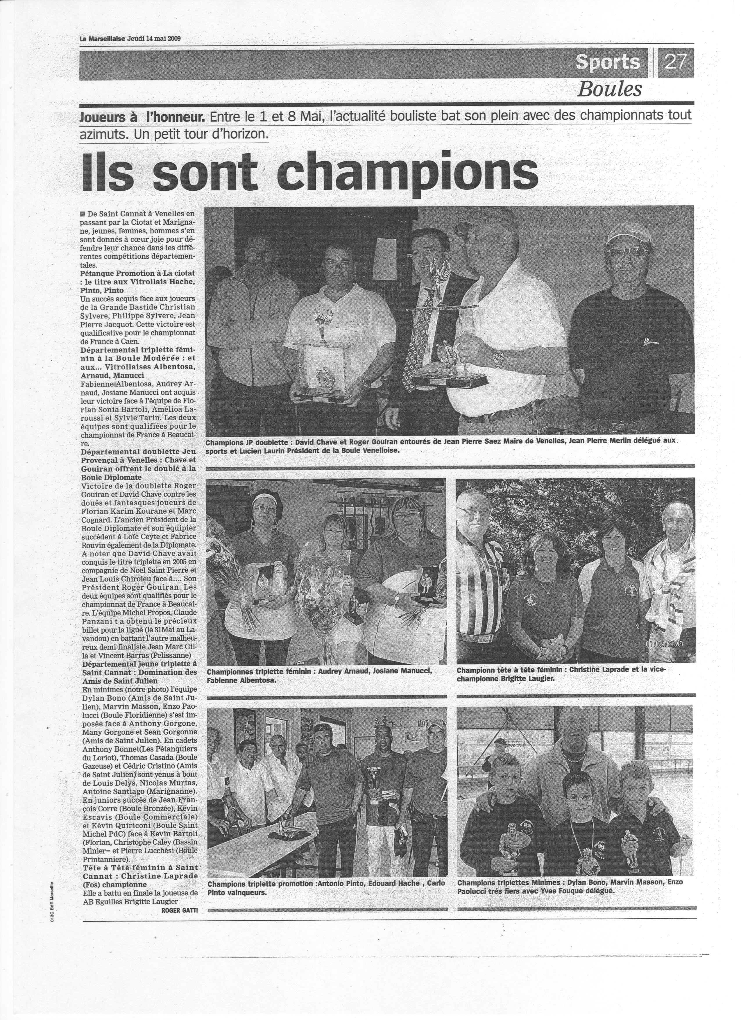 Ils sont champions ; (Par Roger Gatti)