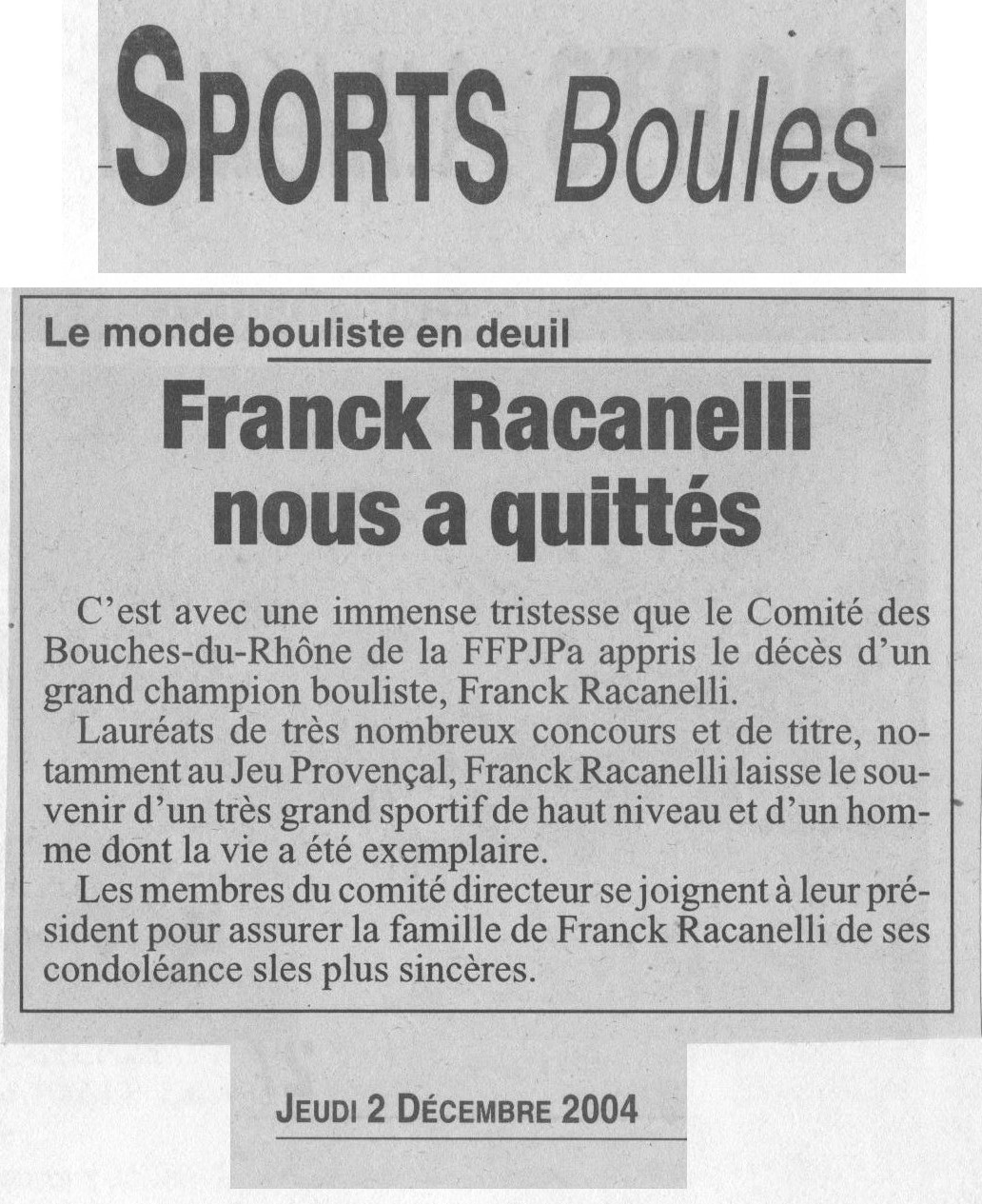 Le monde bouliste en deuil :