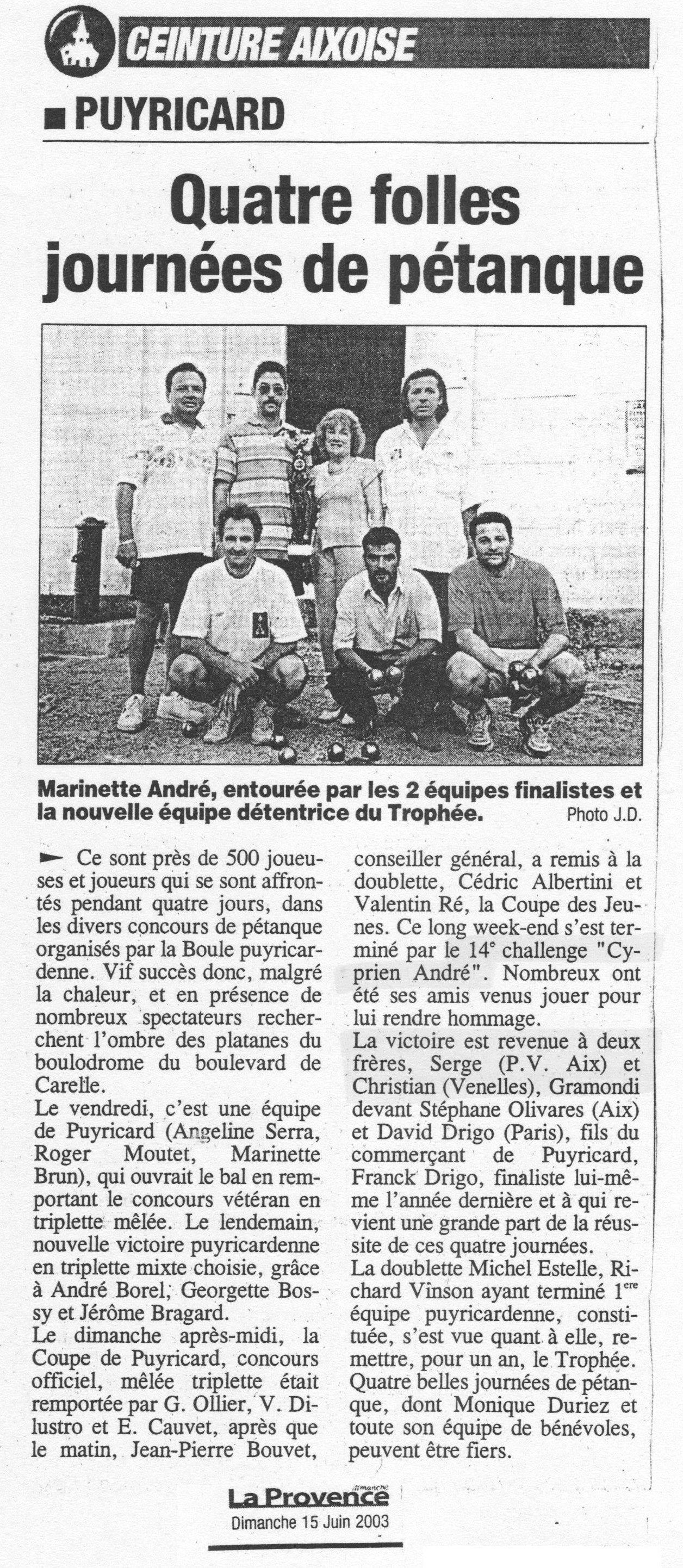 Puyricard - Quatre folles journées de pétanque ;