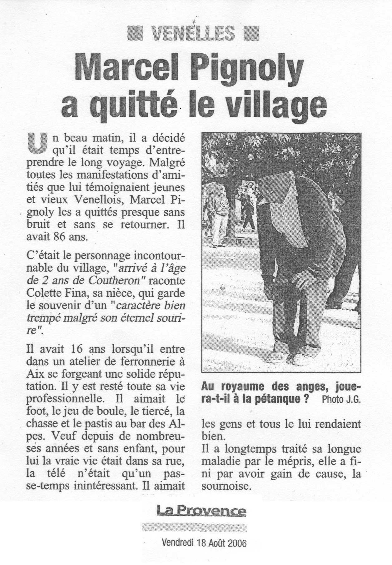 Marcel Pignoly a quitté le village