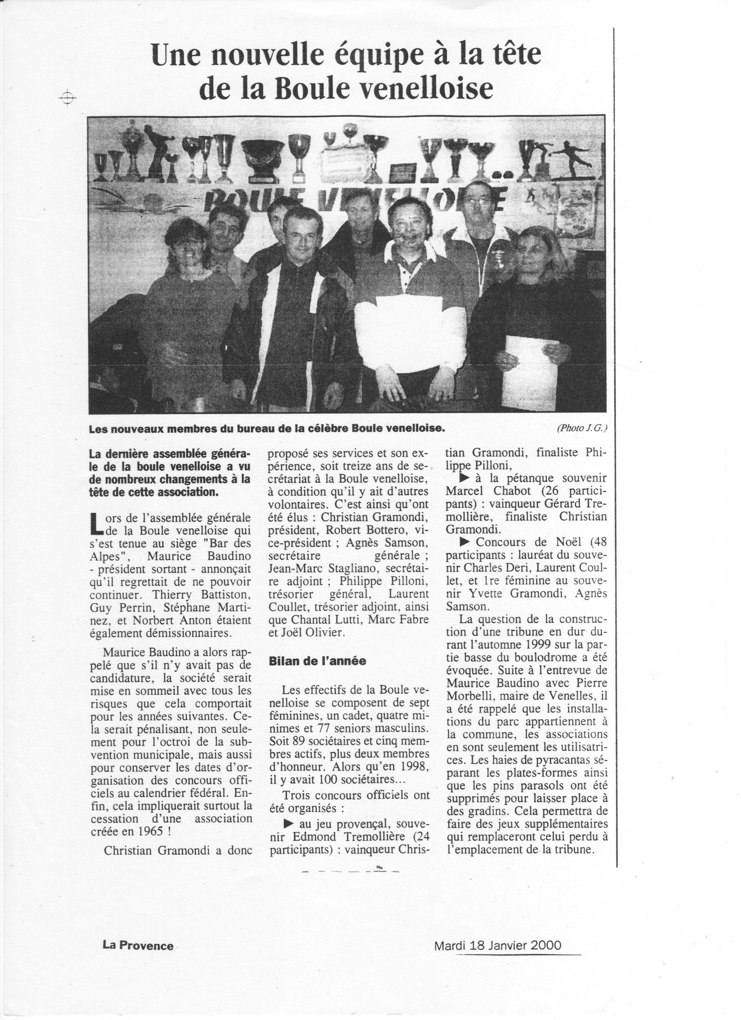 Une nouvelle équipe à la tête de la Boule Venelloise ;