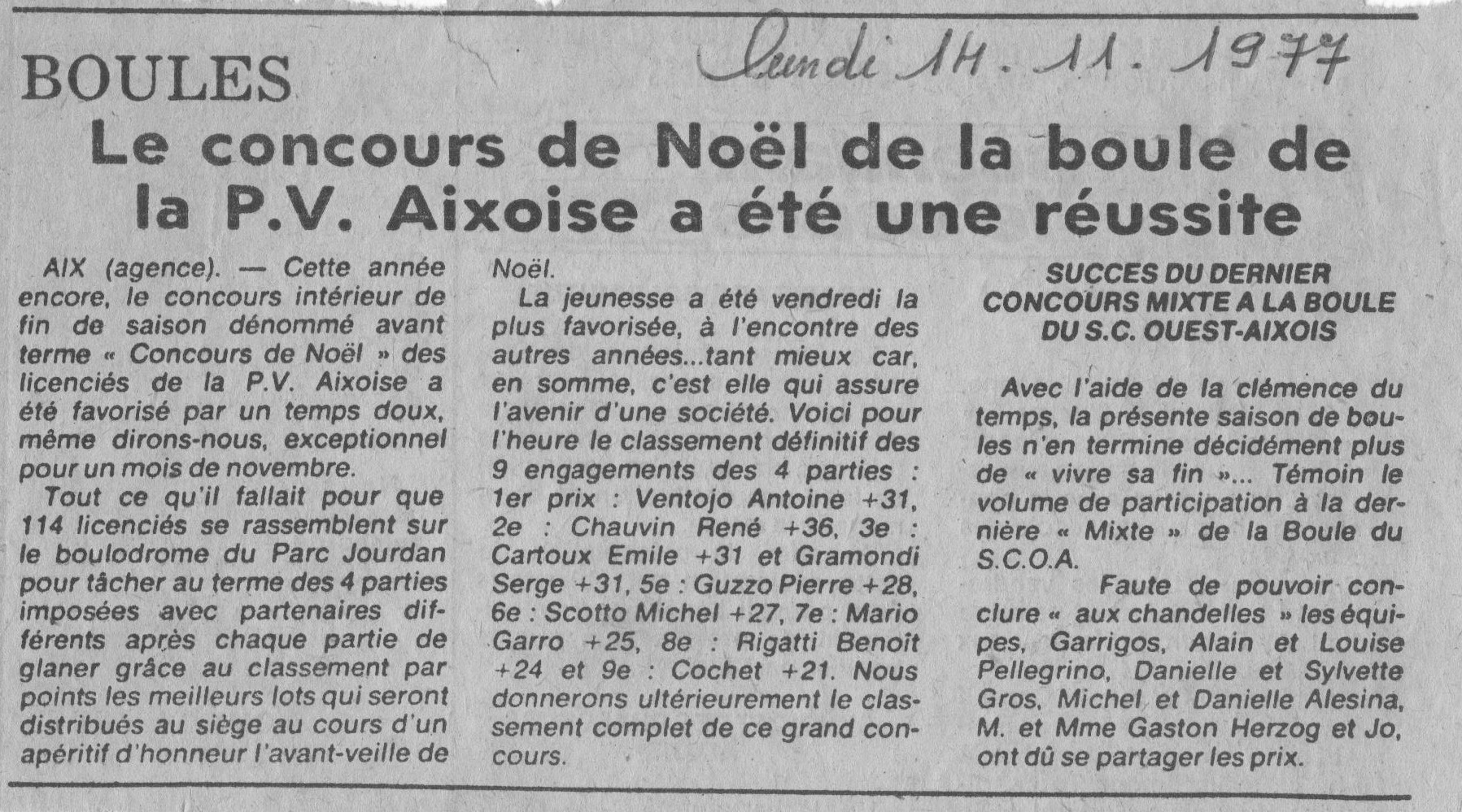 Le concours de Noël de la boule de la P.V. Aixoise a été une réussite