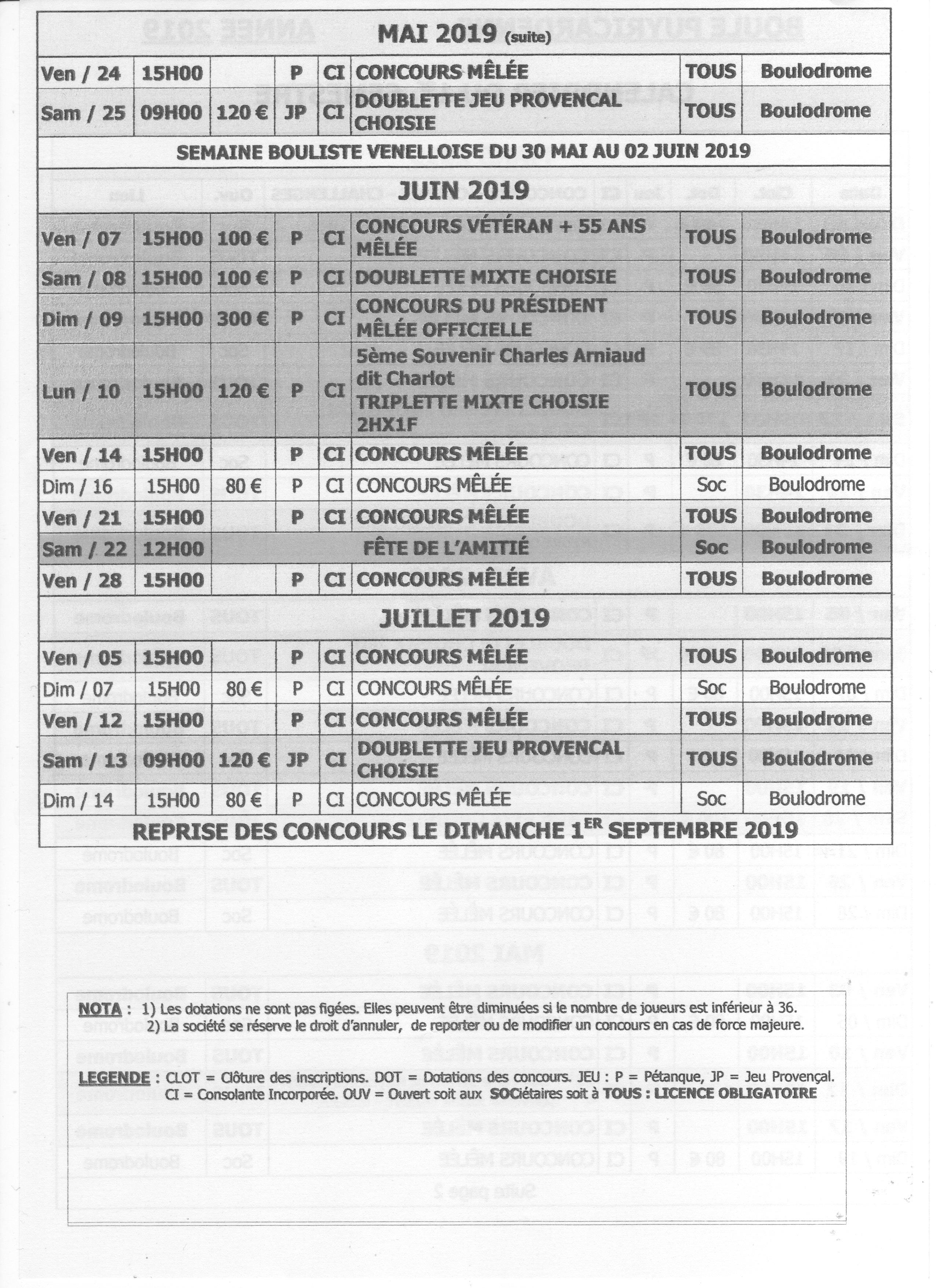 Calendrier du 1er semestre 2019