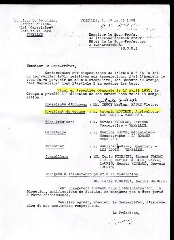 En 1938, Etienne Musso âgé de 12 ans associé à ses deux oncles Clovis et Marcel Pignoly participe pour la 1ère fois au concours de boules du "Petit Provençal" à Marseille. Les hasards du tirage au sort les opposent à une équipe d'amis de Puyricard avec qui ils étaient venus en train, alors que le concours réunissait plus de 500 équipes !...