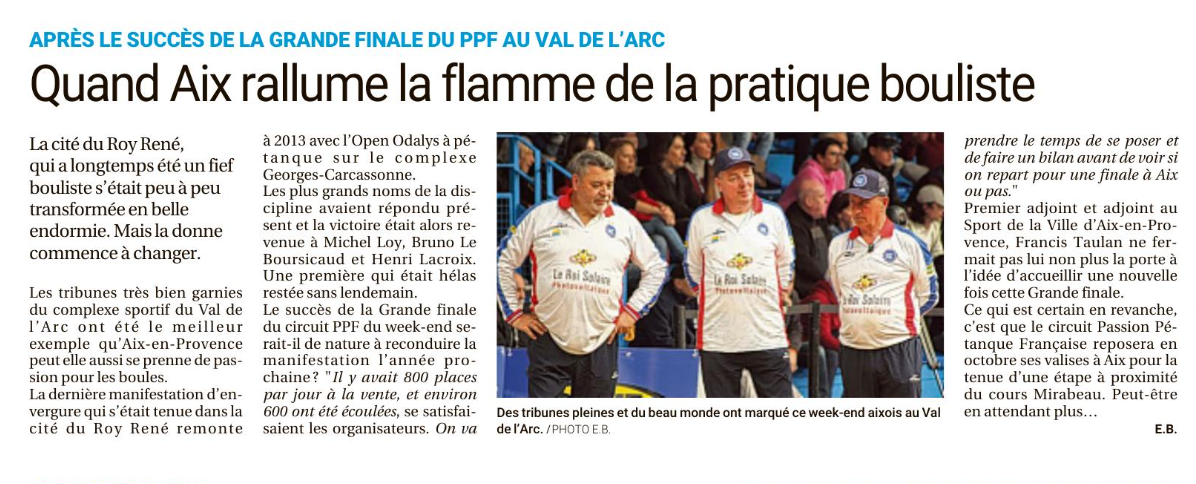 Quand Aix rallume la flamme de la pratique bouliste ;