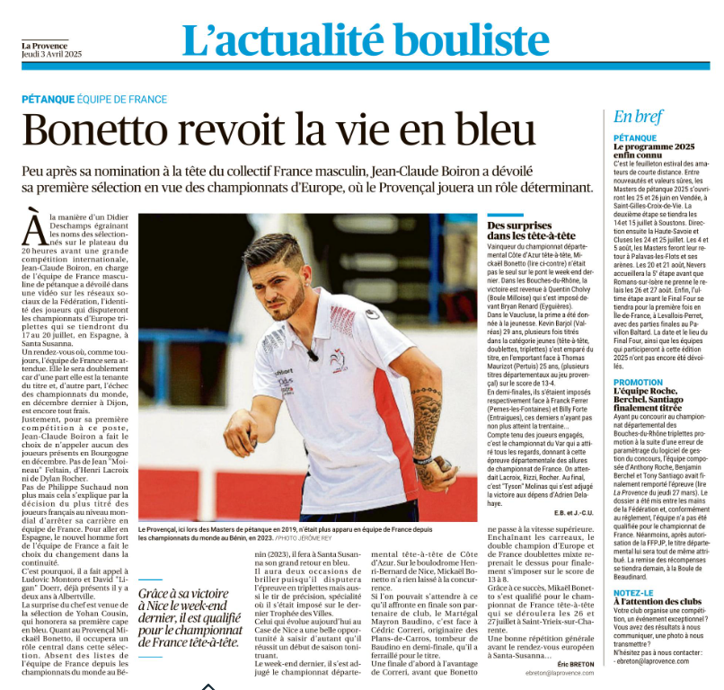 Les actualités de la pétanque et du monde bouliste