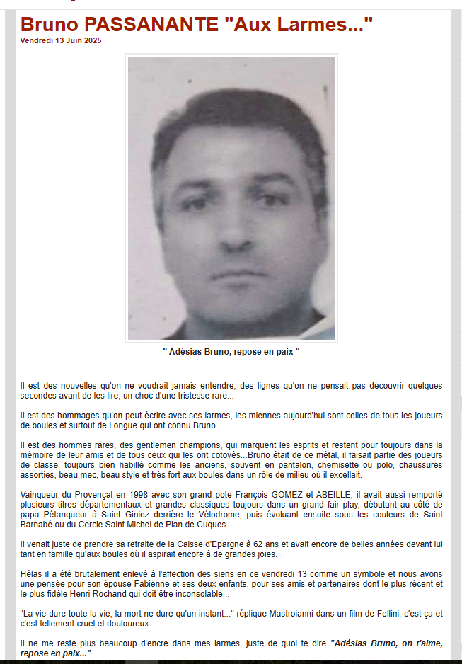 Bruno PASSANANTE "Aux larmes..." article hommage de Vincent Meger