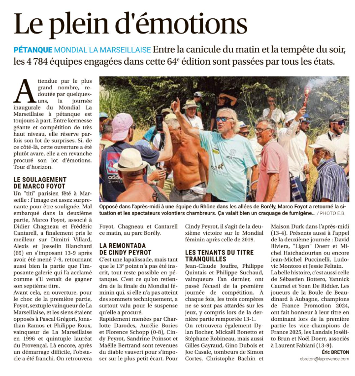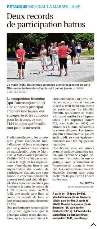 Avec pas moins de 4 784 équipes inscrites au départ de cette 64ème édition du mondial à pétanque "La Marseillaise", le record d'équipes engagées est battu ;