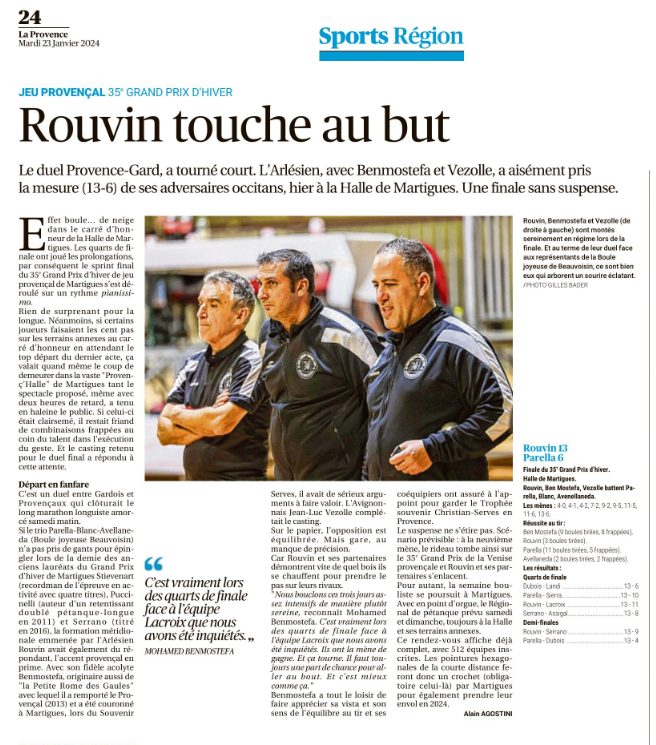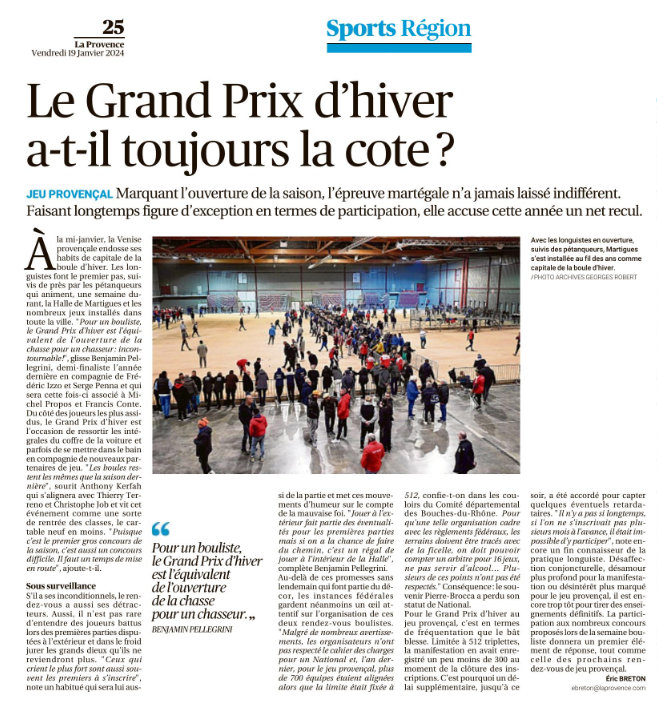 35ème Grand Prix d'hiver au jeu provençal à Martigues du 20 au 22 janvier 2024 -