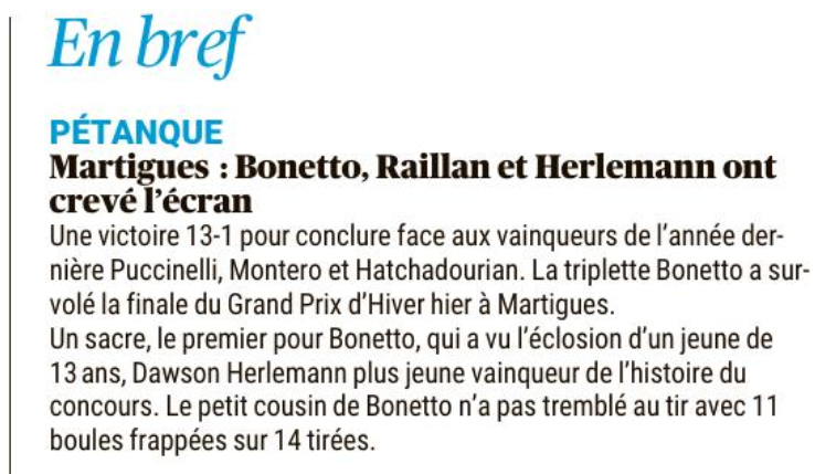 Les actualités de la pétanque et du monde bouliste