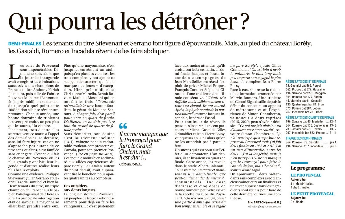 Nos voisins de Puyricard, Michel Gastaldi, Jean-Pierre Bossy et Gilles Grimaldier sont de nouveau dans le dernier carré après leur victoire en 2021.