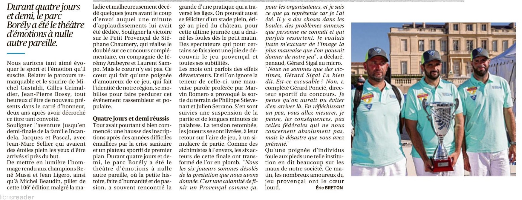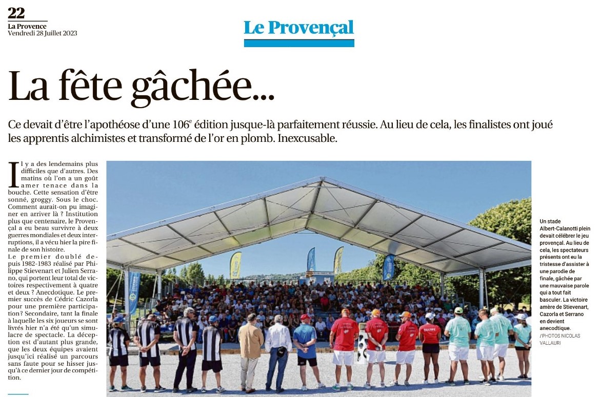 C'est regrettable pour les organisateurs, le public présent sur les lieux et les spectateurs qui suivaient la partie grâce à une transmission vidéo sur Facebook. L'image du sport bouliste est écornée une nouvelle fois. Malheureusement ce n'est pas inédit, il y a eu des précédents dans le passé !