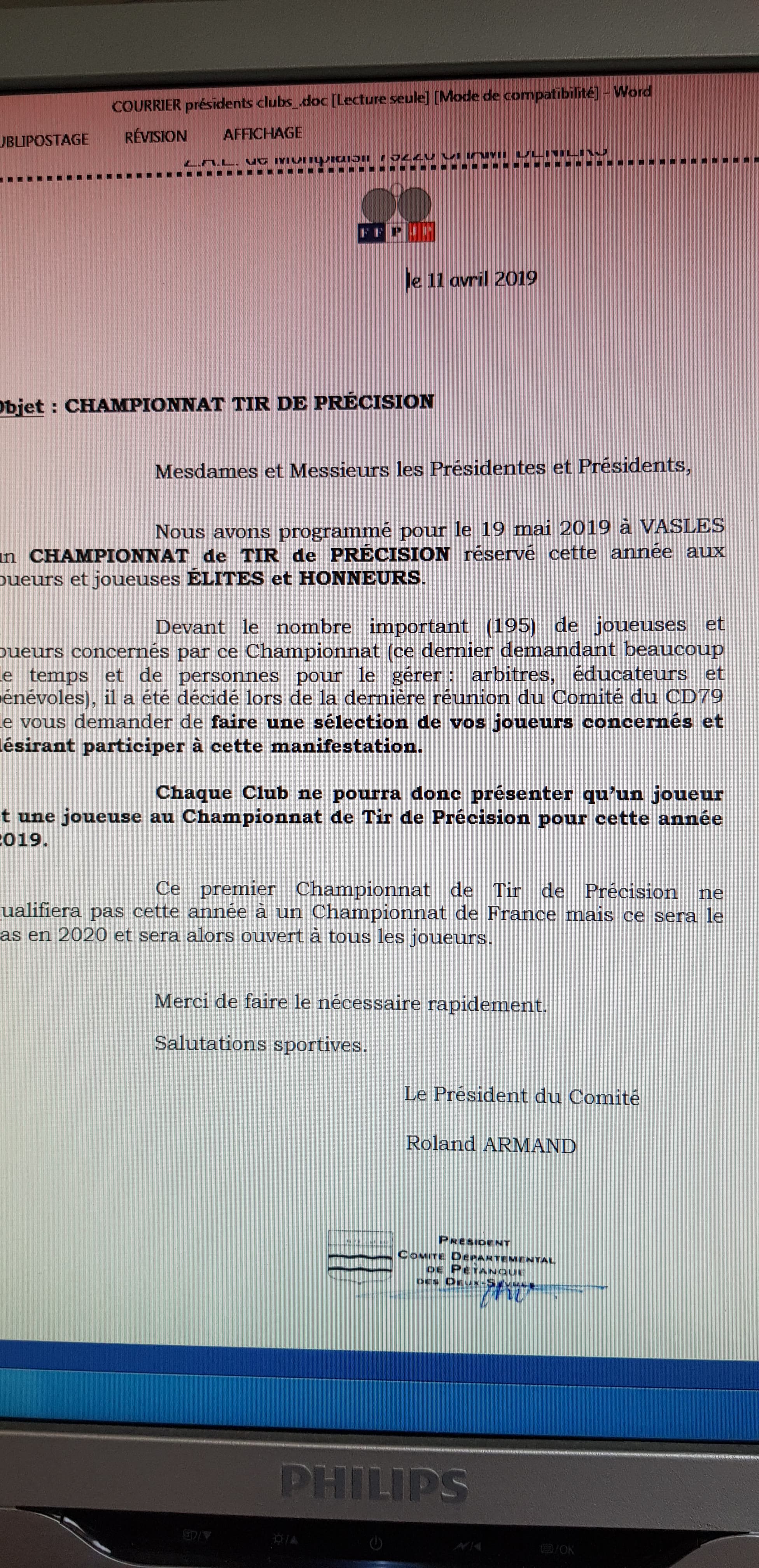 Le Week end prochain en route pour PARTHENAY pour le doublette féminin ainsi que la finale tête à tête homme