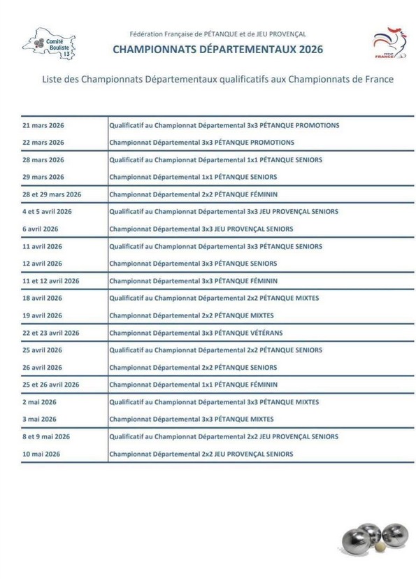 DIFFERENTS CHAMPIONNAT DE FRANCE 2026