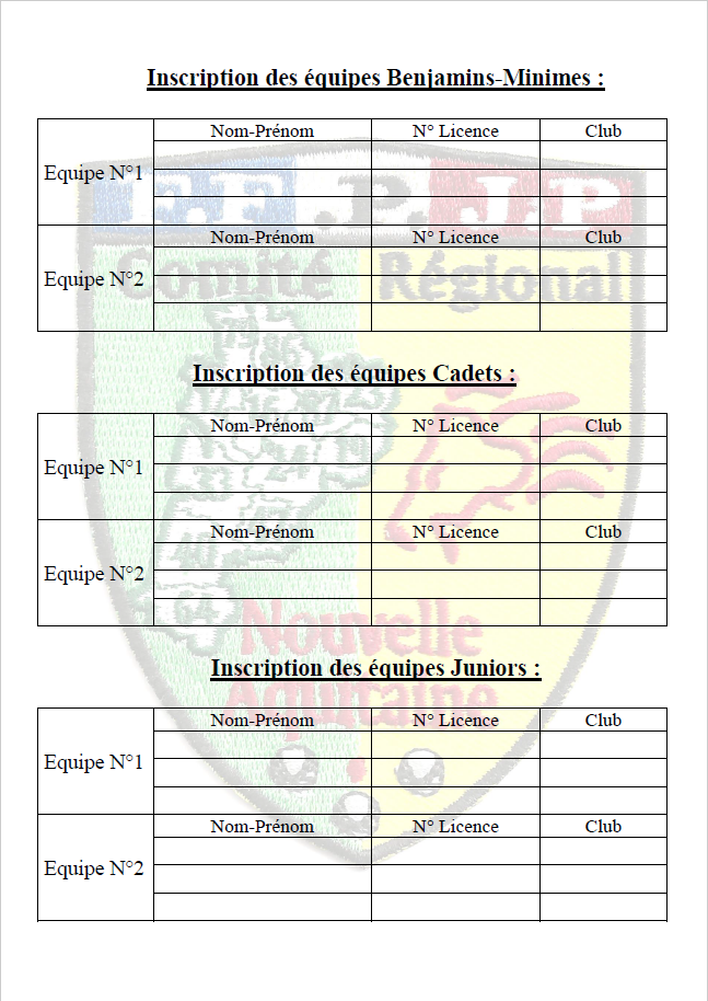 Voici les différents documents pour les demandes de licences ainsi que les renouvellements.
