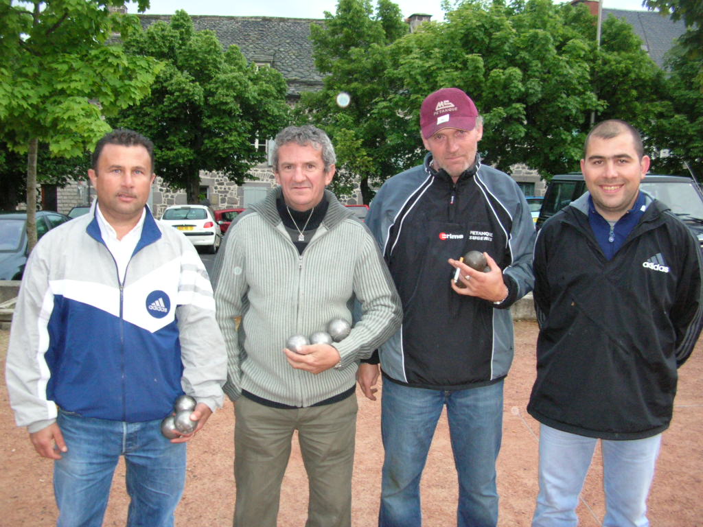 Robert Nicole, Robert Jean-Paul et Torrossian Max battent Combelle Lucette, Stéphane Chassant et Didier Mauranne Pétanque Haute Auvergne