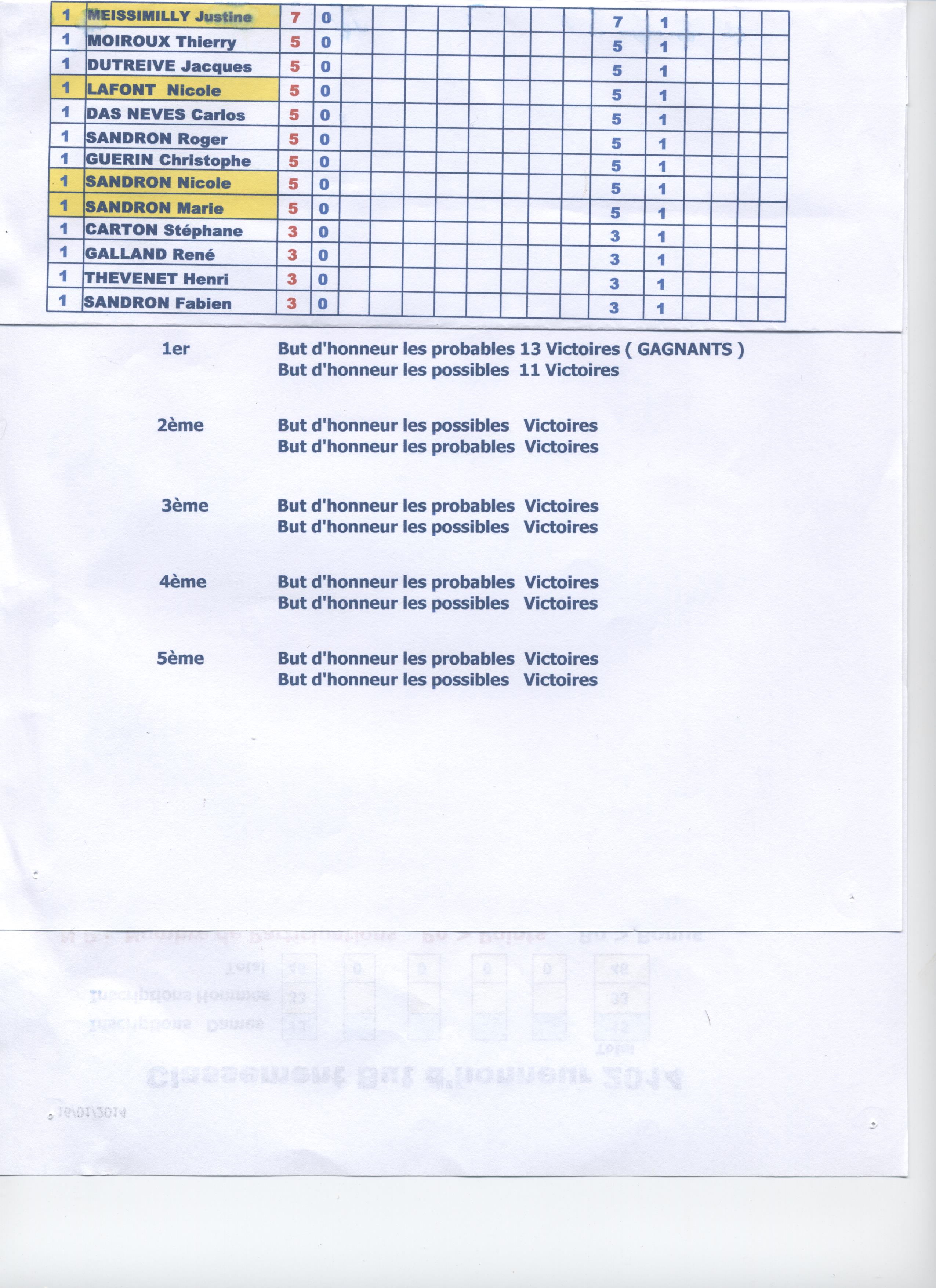- En championnat " " doublette féminine, une doublette a atteint la 1/2.