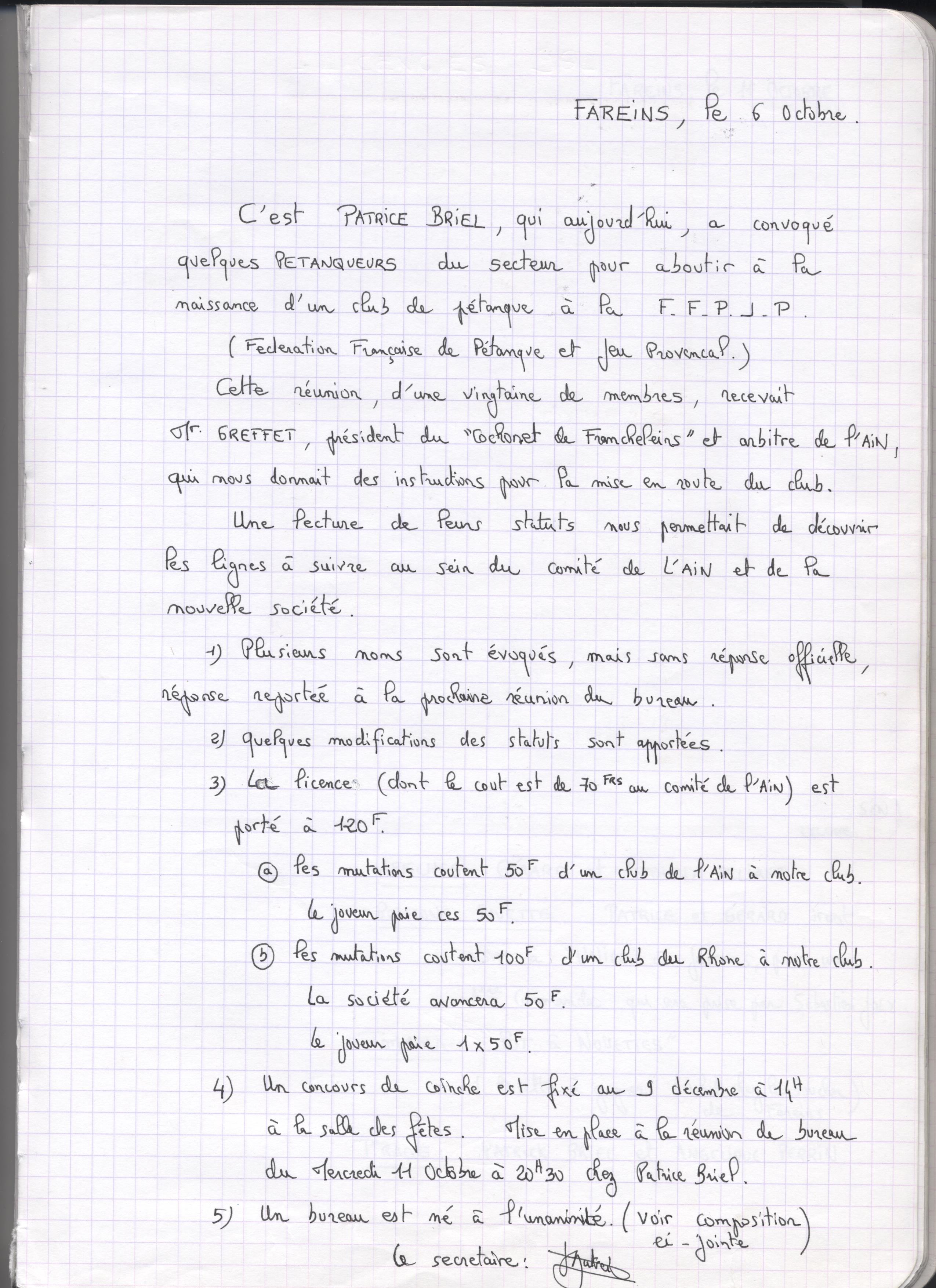 Il y a 20 ans, jour pour jour, une bande de copains ,sous l'impulsion de Patrice BRIEL, se réunissait pour créer la pétanque farinoise.