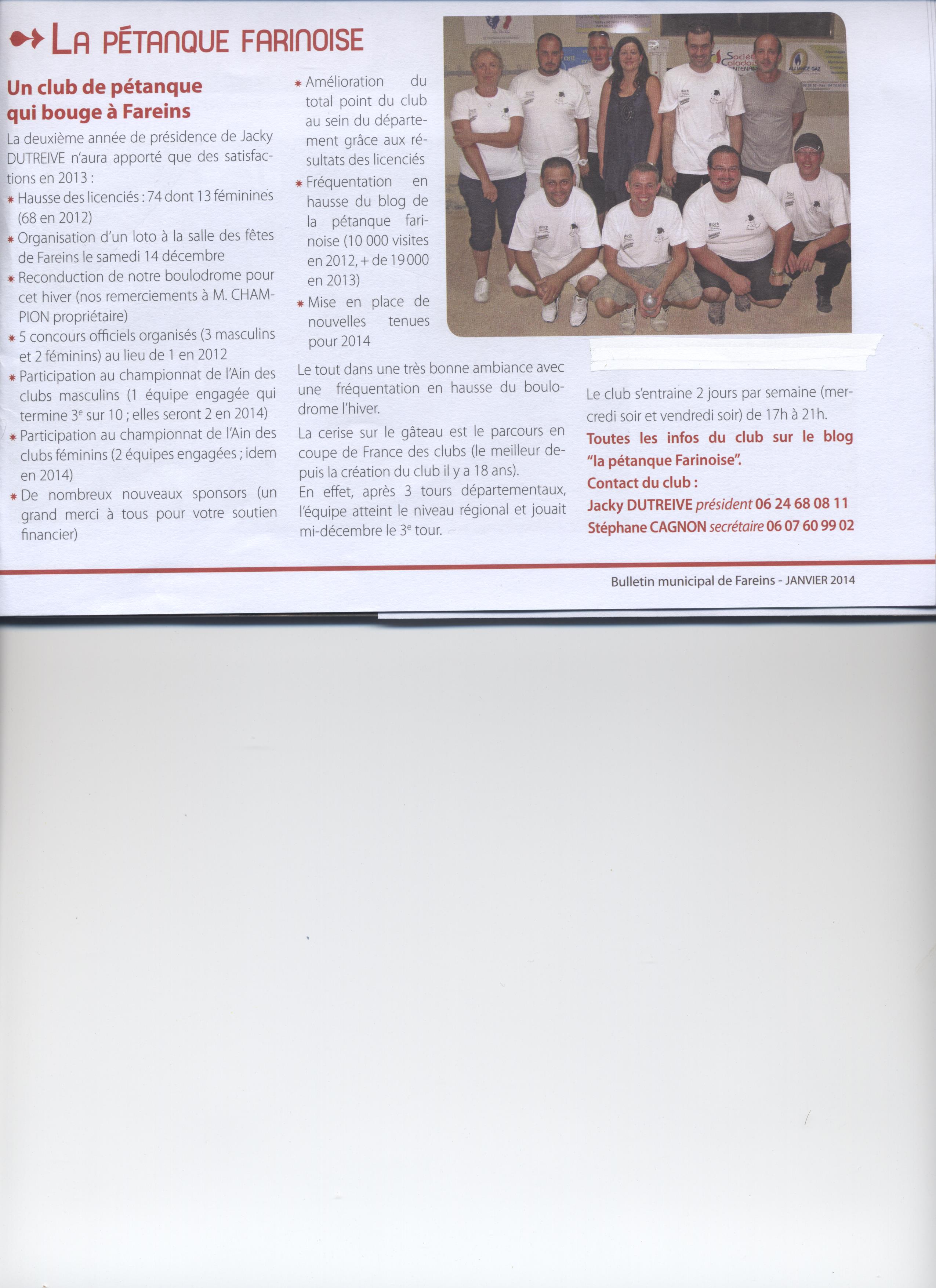 Vous trouverez en lien ci dessous l'article sur le club de FAREINS paru en début d'année dans le bulletin municipal de la commune.