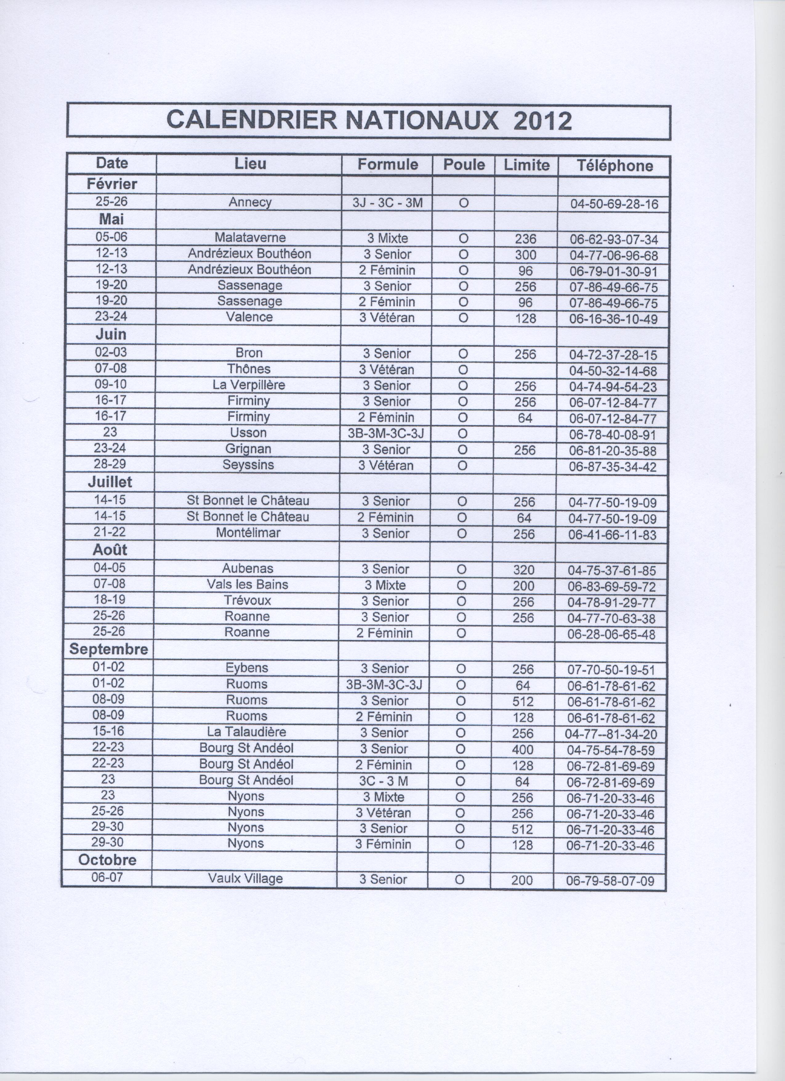 Vous trouverez avec le lien ci dessous tous les nationaux 2012 organisés dans la ligue RHONE ALPES.
