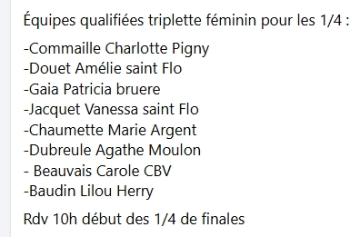Les qualifiées en quart du Triplette Féminin.jpeg
