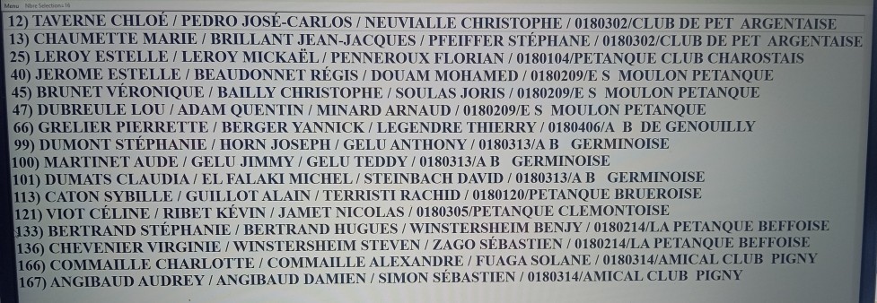 Voici les équipes du Moulon inscrites au championnat du Cher "Triplette Mixte" samedi prochain à Trouy: