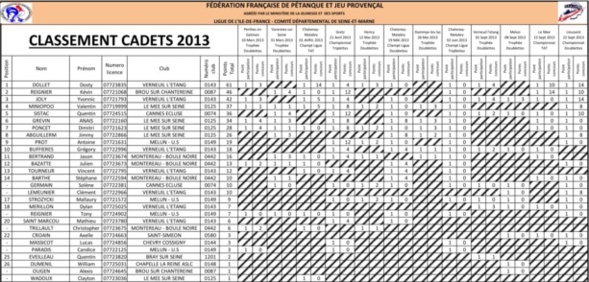 Résultats et classements Jeunes 2013