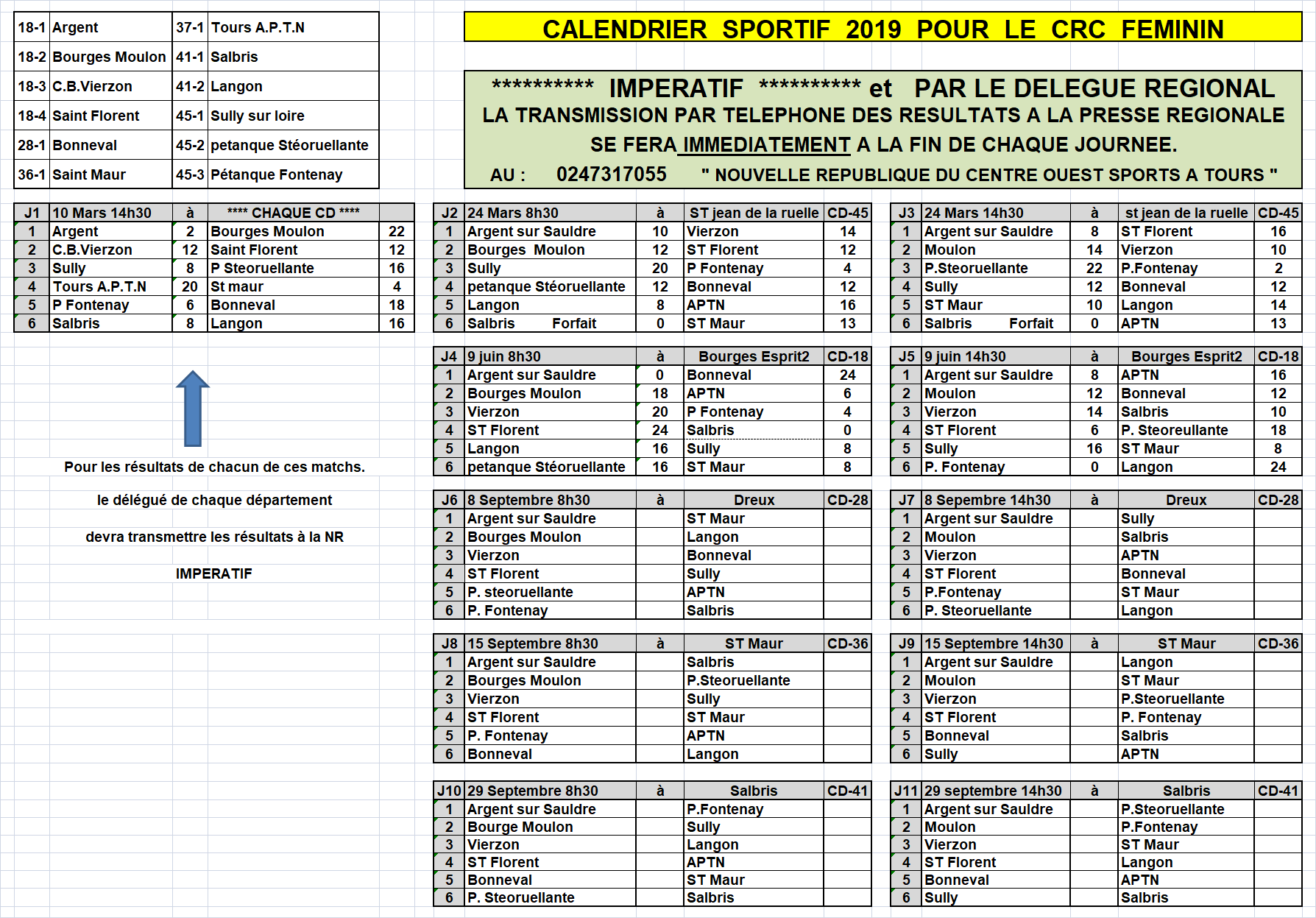 Prochaines journées: dimanche 8 septembre à DREUX - 28 (féminin) et à SAINT BRANCHS - 37 (masculin)