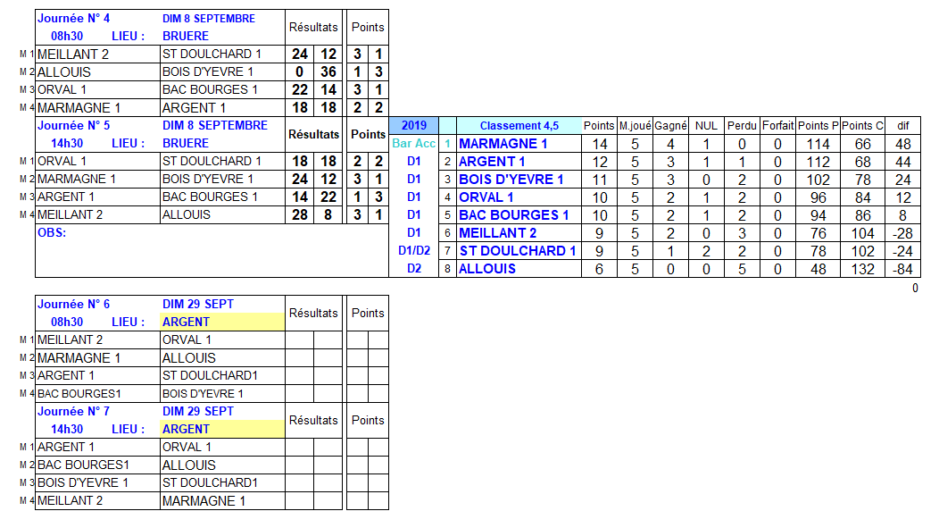 à BRUERE: division 1 (journées 4 et 5)